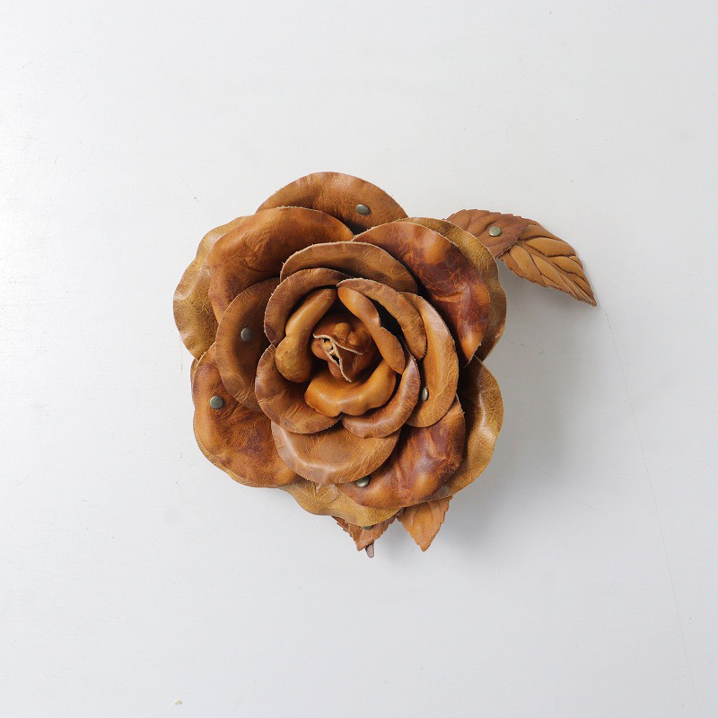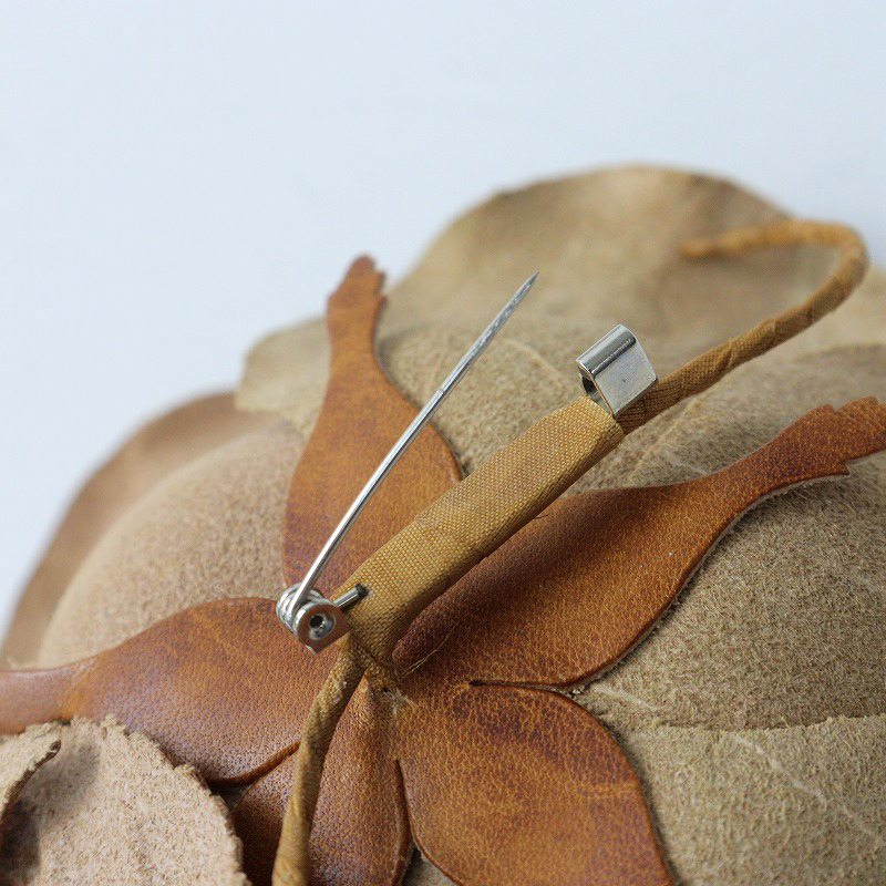 美品 希少 ピンクハウス PINK HOUSE レザーローズコサージュ/ブラウン ブローチ 花 フラワー 薔薇 アクセサリー 【2400014118605】