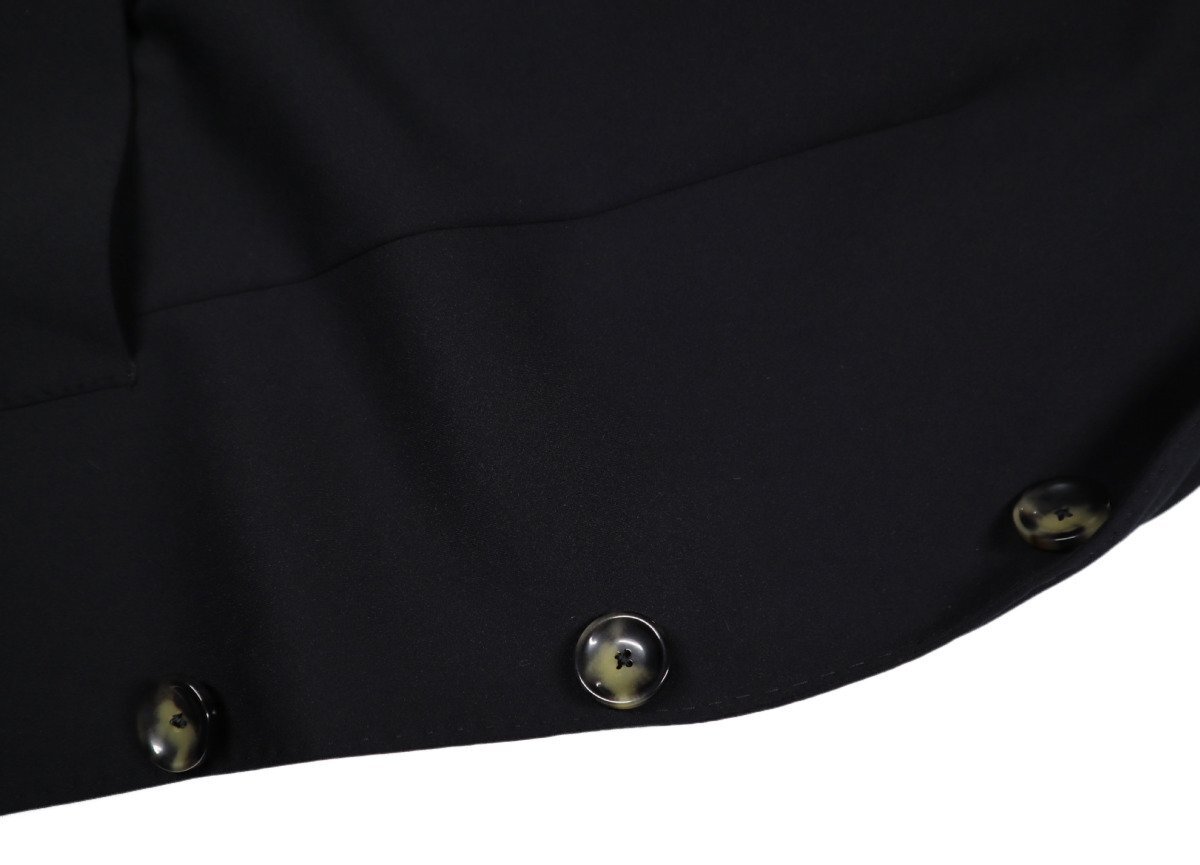 ナイロンにポリウレタンを38%も混紡したオリジナルの「ハイパーストレッチ素材」を使用した、ブラック色。快適な「ハイパーストレッチ素材」ながら上品かつエレガントに仕上がっているのは、優れた技術力の「ラトーレ」ならでは。煌めくゴールド色のラペルピンズもアクセントで、本水牛ボタンからも上質感がわかります。