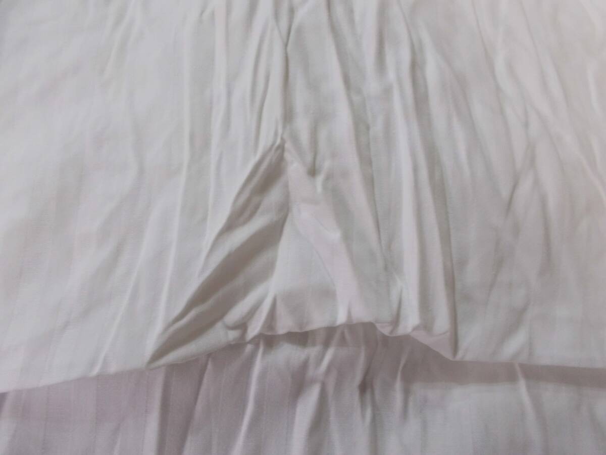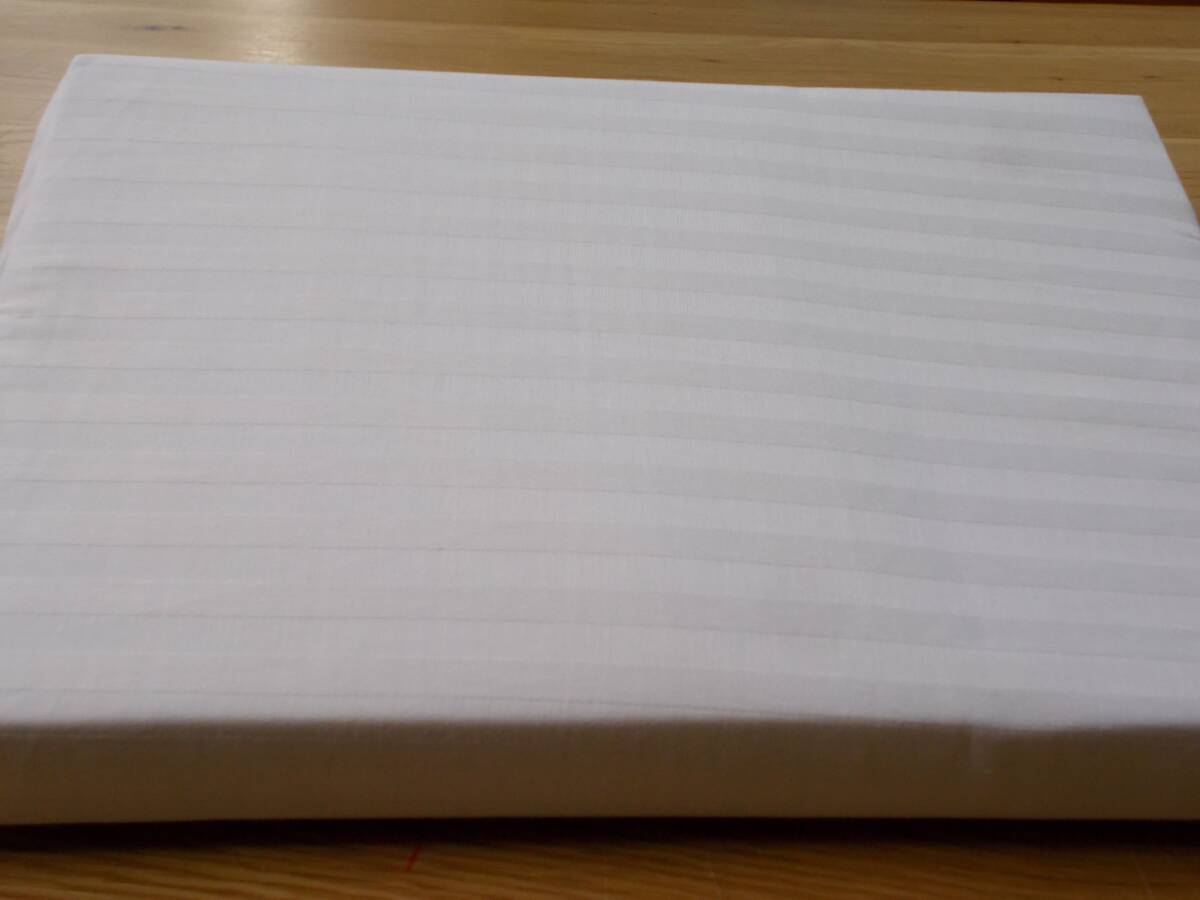 高級ホテルなどでよく使われている、綿100%のサテンストライプのボックスシーツです。厚みが30cmの厚いマットにも対応しています。