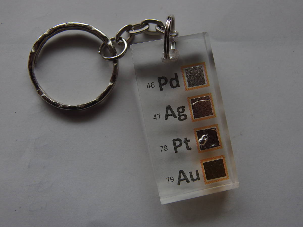 Pd,Ag,Pt,Au 貴金属4種 実物元素 樹脂モールドキーホルダー 金属元素標本 販売