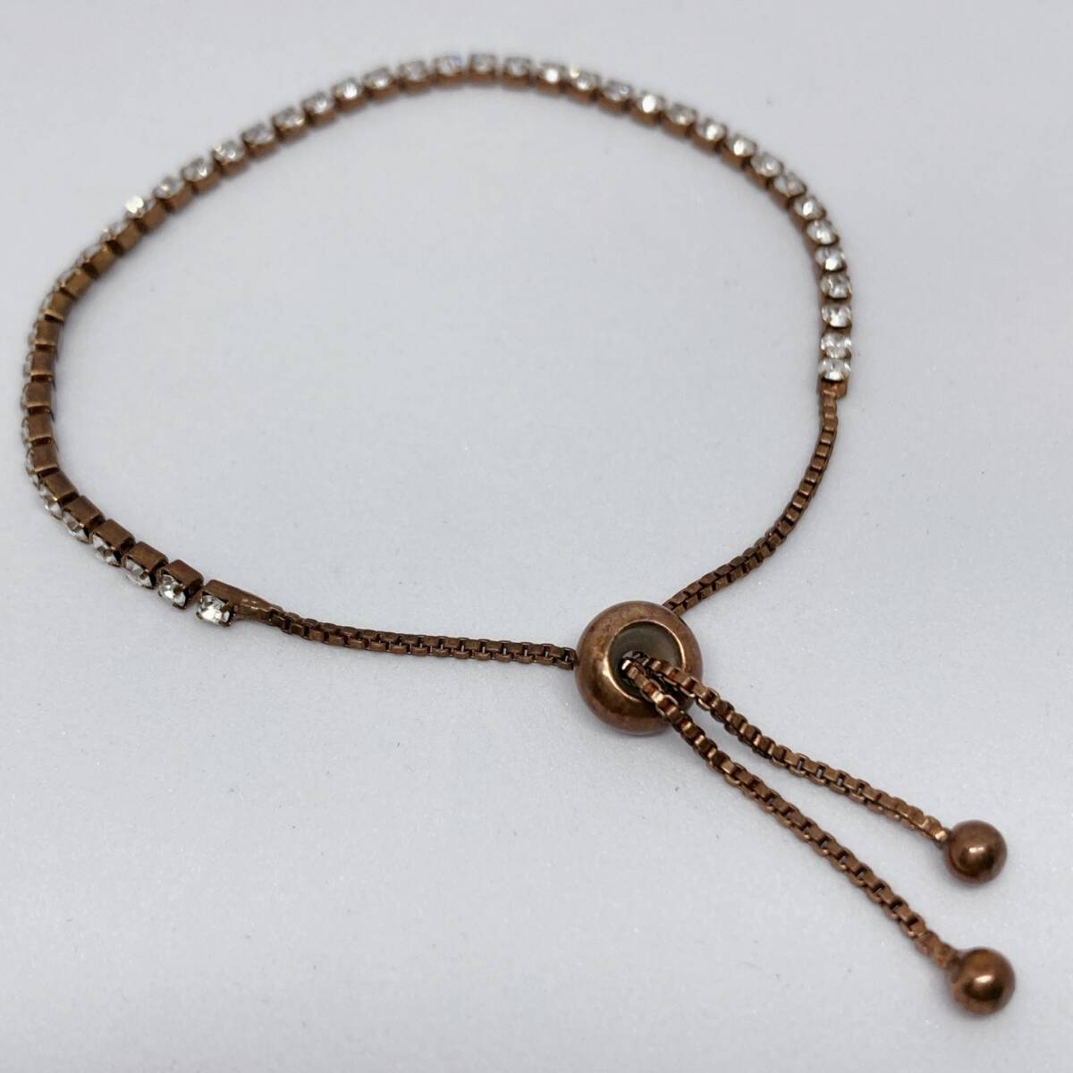 ブレスレット  ラインストーン 細目 ブロンズ ☆Vintage jewelry accessories R0124