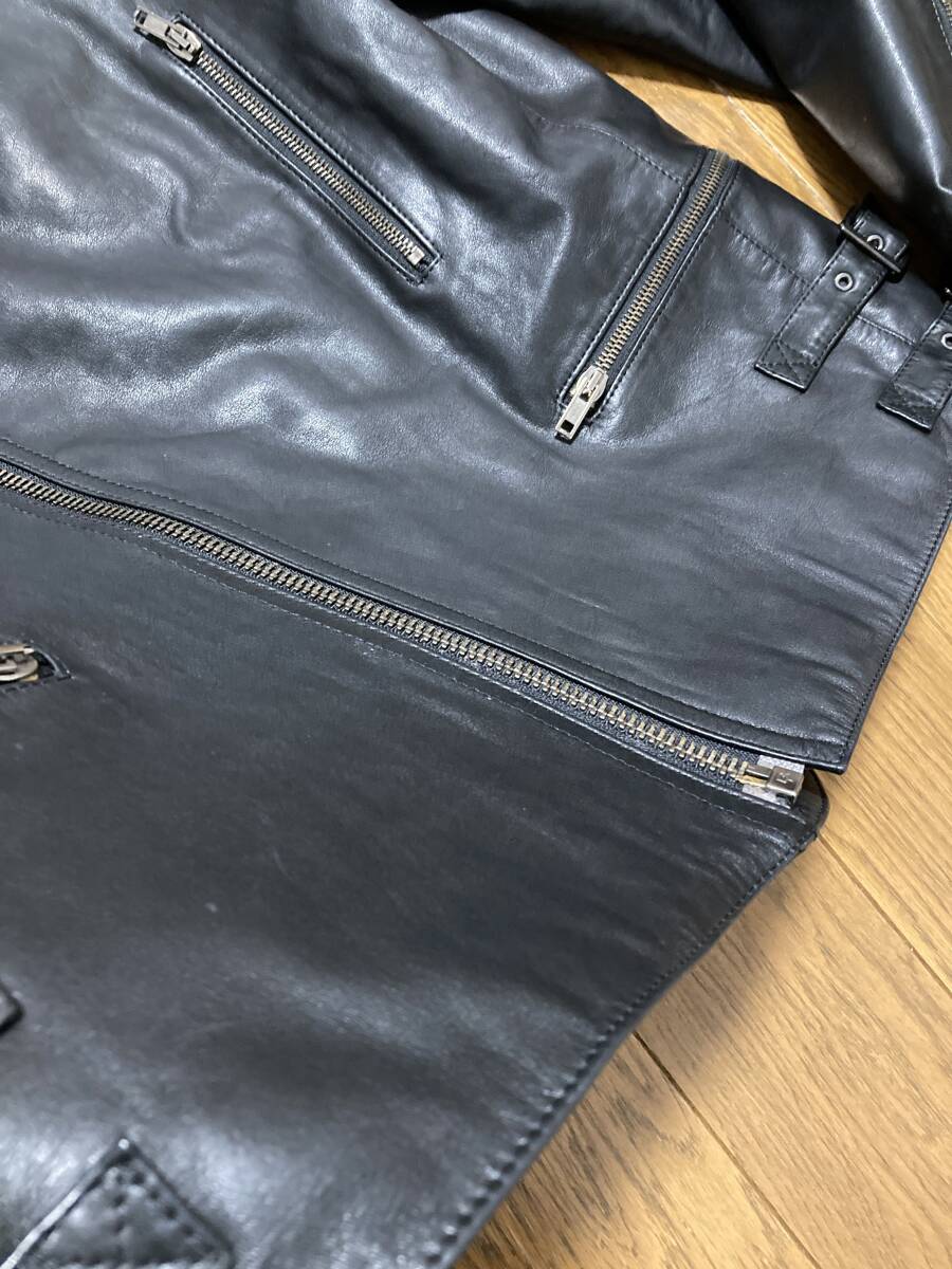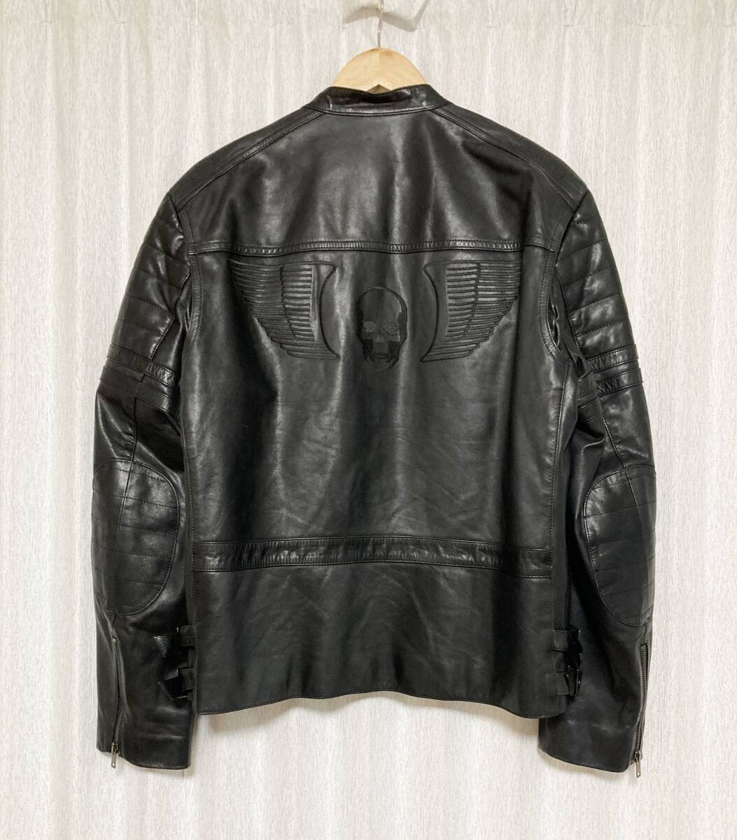 [Lucien pellat-finet] スカル刺繍 パテッド バイカーライダース レザージャケット L 牛革 ブラック メンズ 中綿 ルシアンペラフィネ