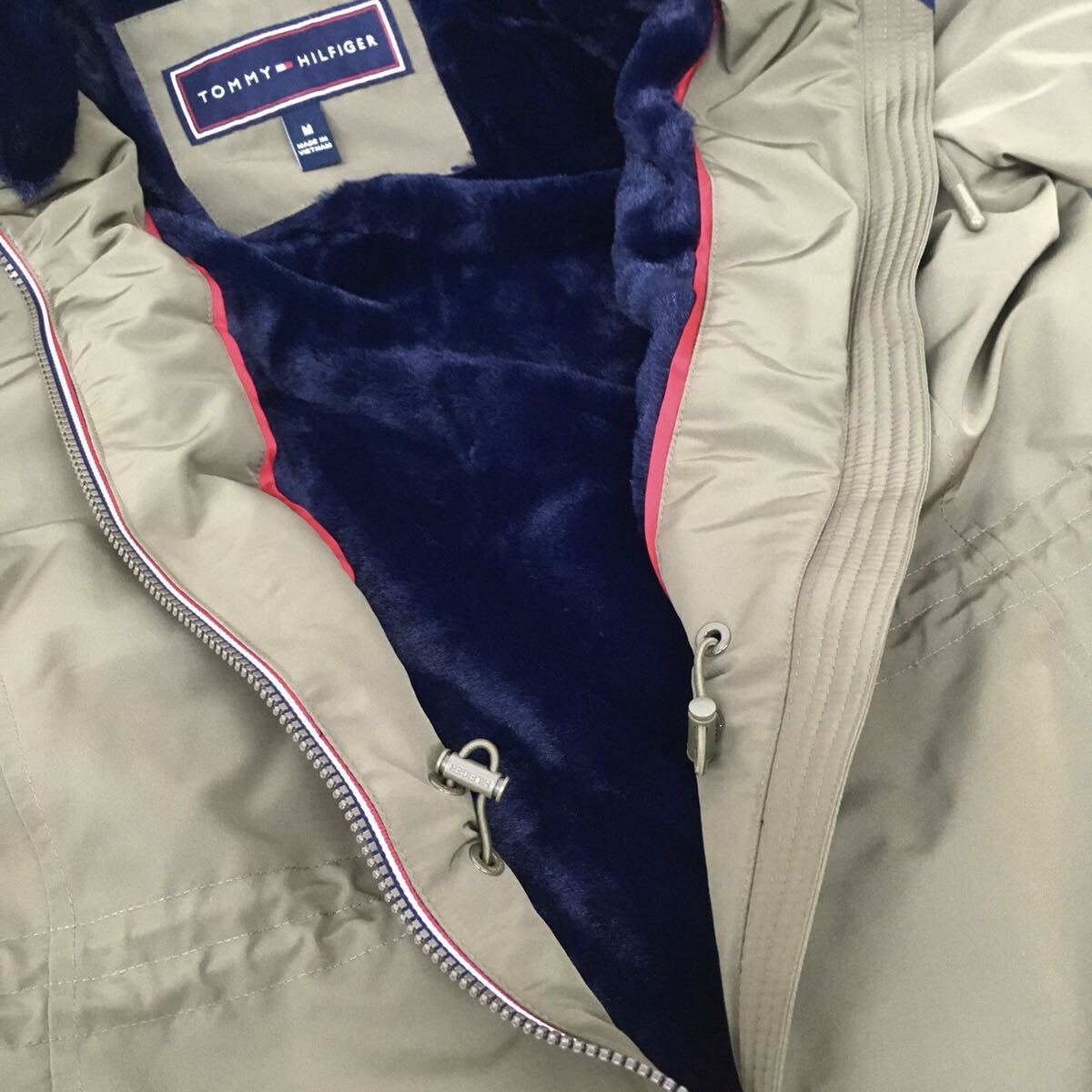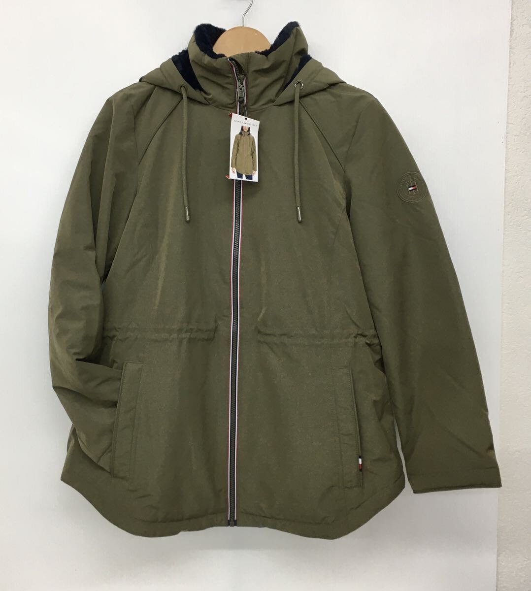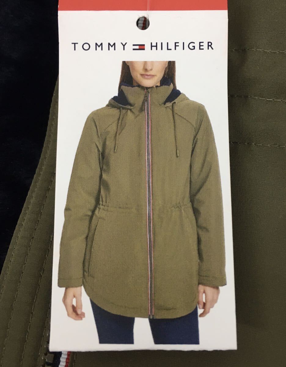 TOMMY トミーヒルフィガー レディース フード付きジャケット 裏ボア M カーキ ロゴ