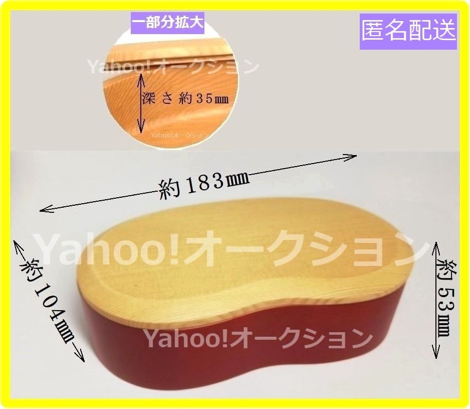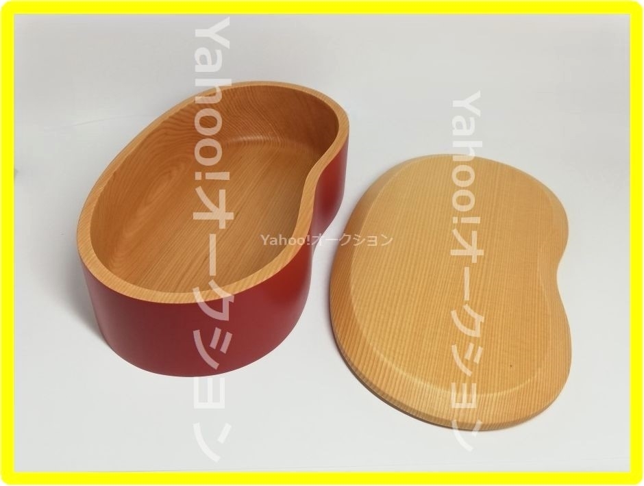 【特注品】未使用品 そら豆型 天然木 くり抜き弁当箱 約18.3㎝×約10.4㎝×高さ約5.3㎝ ウレタン塗装加工 曲げわっぱ弁当箱より壊れにくい