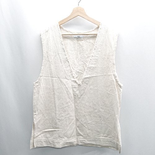 ◇ ⊂ Discoat フリンジ加工 Vネック スリット加工 ベスト サイズF アイボリーホワイト レディース E