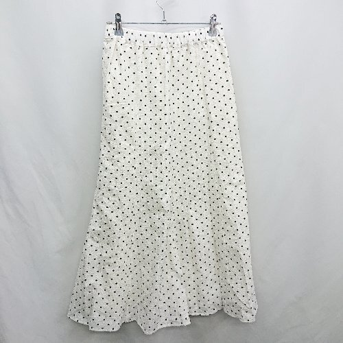 ◇ ⊂ ◎ ●美品● Techichi テチチ ドット柄 ロング丈 フレア スカート サイズF オフホワイト ブラック レディース E