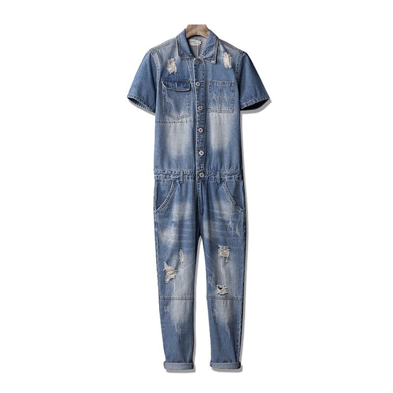 つなぎ 作業服 オールインワン ダメージ加工 デニム つなぎ オーバーオール ペインターパンツ 半袖 カーゴ サロペット