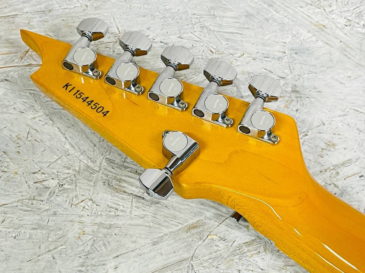高崎晃氏のモデルとして人気のKG-EXPLODERです(シグネチャではありません)。ボディーはメイプル、ネックはハードメイプルです。スケールは648mm。ネックはUシェイプ。セミ・ディープインサートジョイント仕様。(希望小売価格 ¥165、000 2022年11月生産完了)