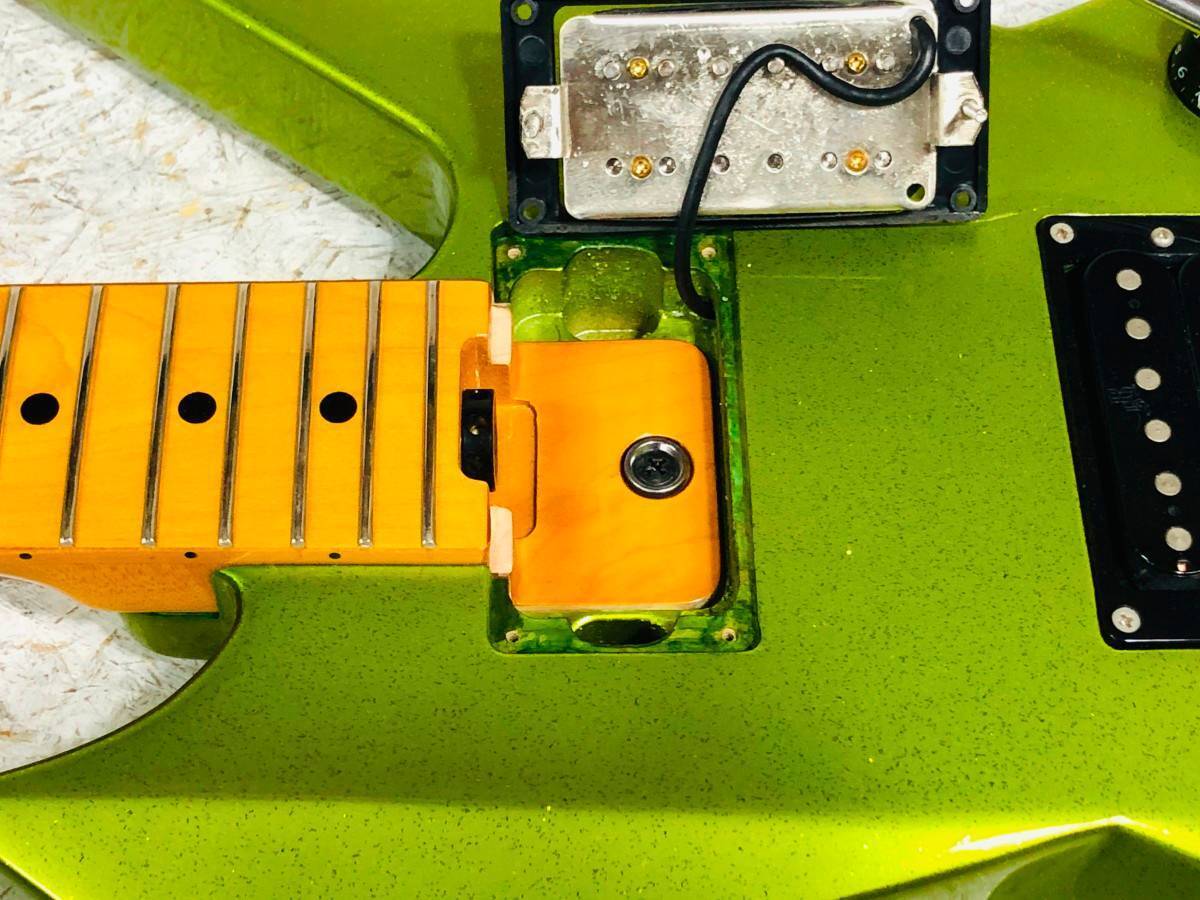 カラーはMGR(メタリックグリーン)。PUは純正LQ-500(F)、Dyna-Bite(R)です。Floyd Rose1000搭載。※六角レンチは欠品しています。
