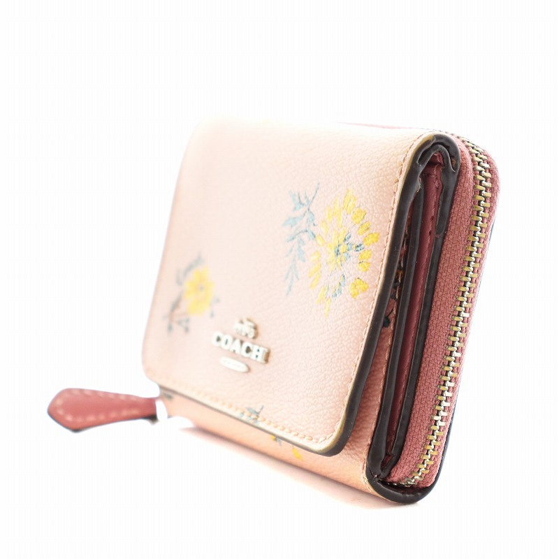 コーチ COACH SVOKV 三つ折り財布 小銭入れ 花柄 レザー ピンク 2924 /AN21 ■OF レディース