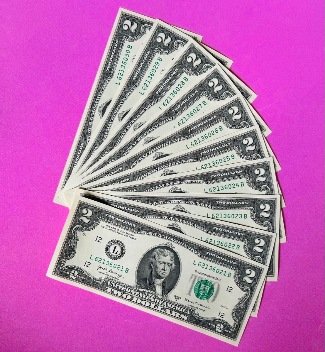アメリカ2ドル紙幣・10枚連番セット