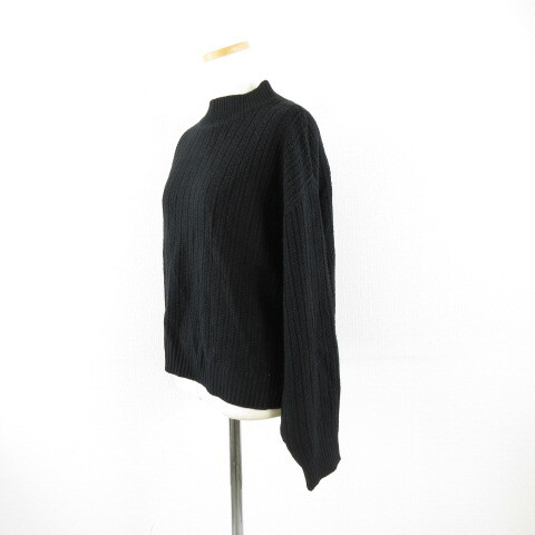 アースミュージック&エコロジー EARTH MUSIC & ECOLOGY バックスリットニット セーター 長袖 黒 F *A143 レディース