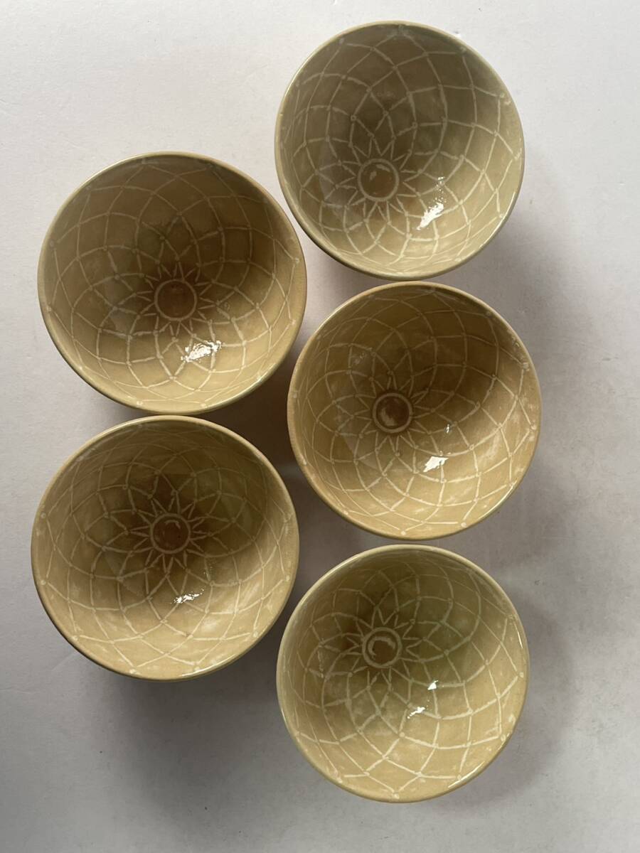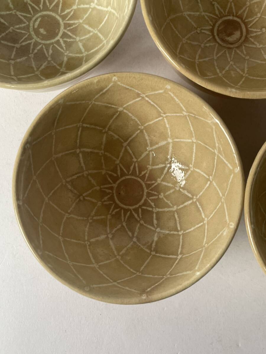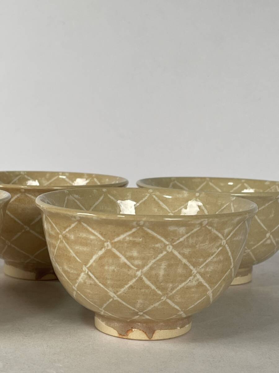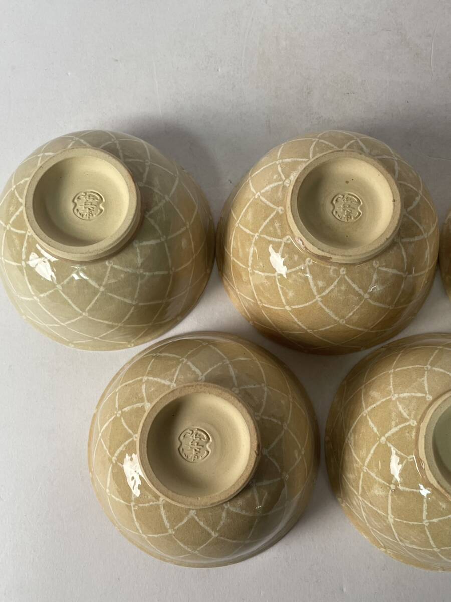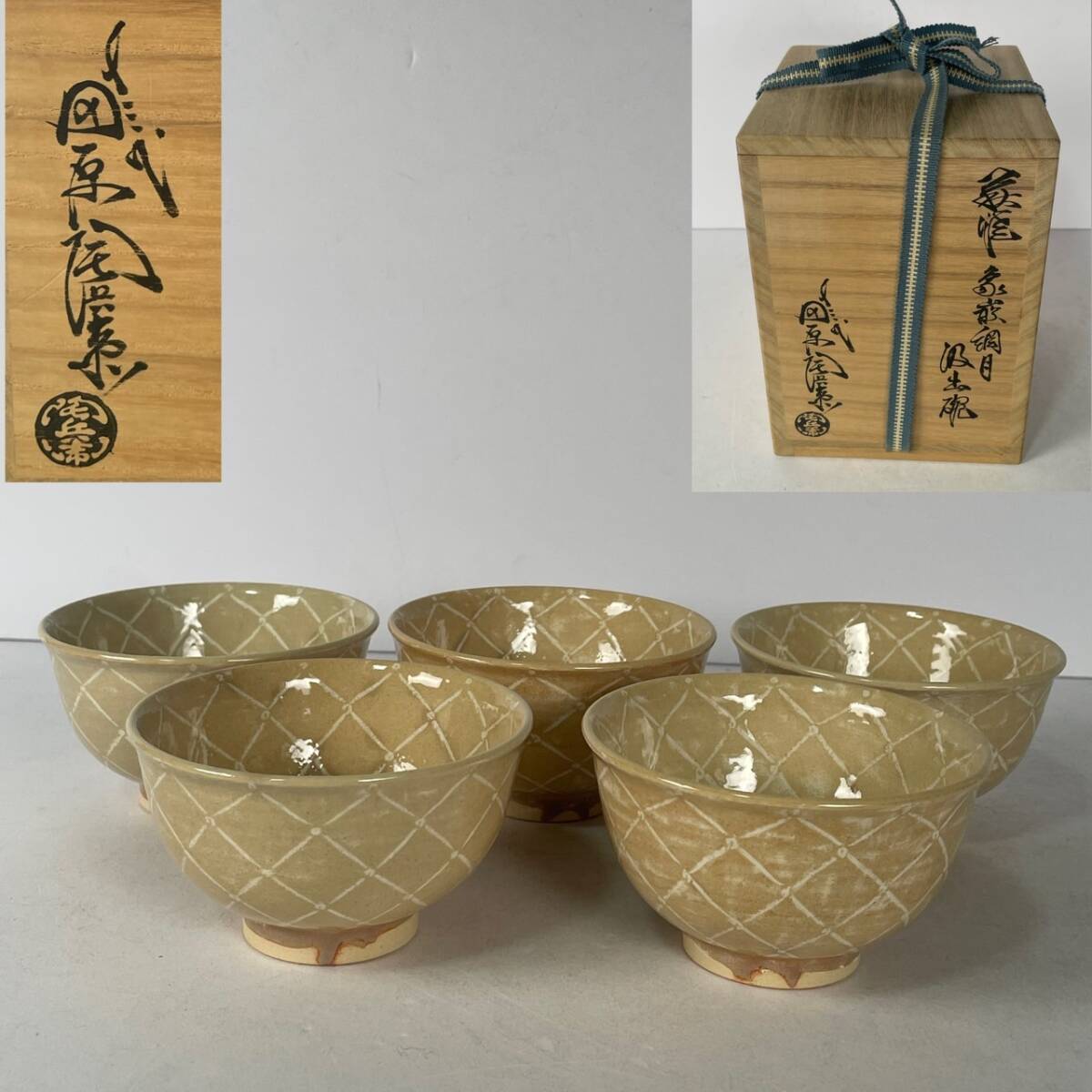 【和美】十三代 田原陶兵衛 萩焼 象嵌網目汲出碗 五客 共箱 茶道具 本物保証 120970