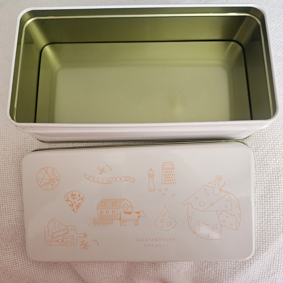 チーズ缶だったので柄がチーズをテーマにしたもので可愛いです。
