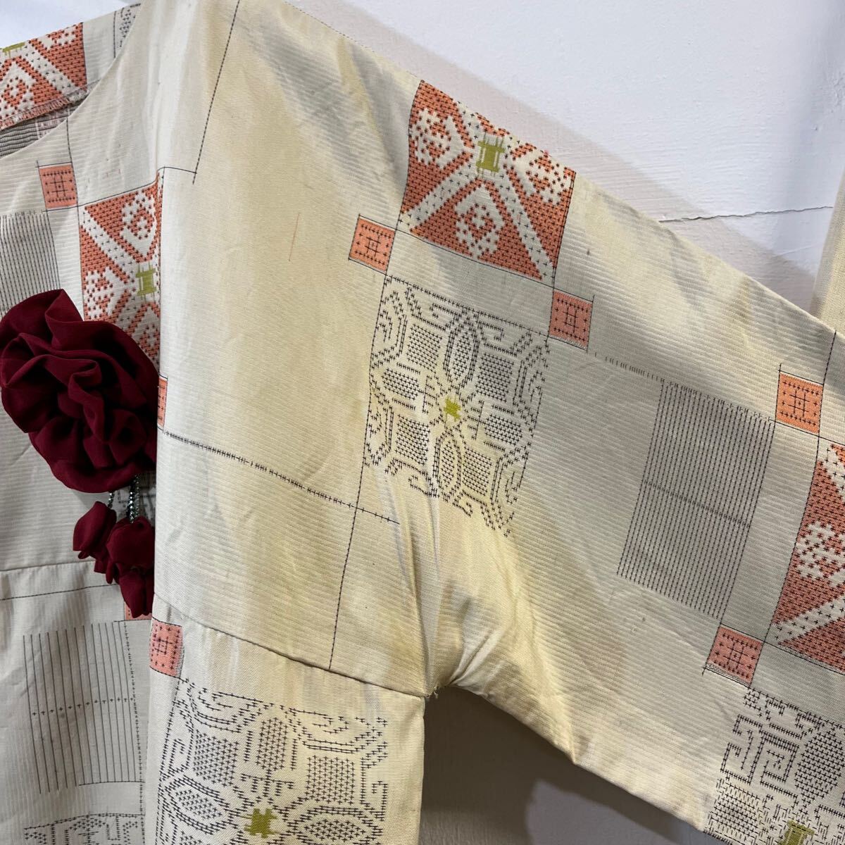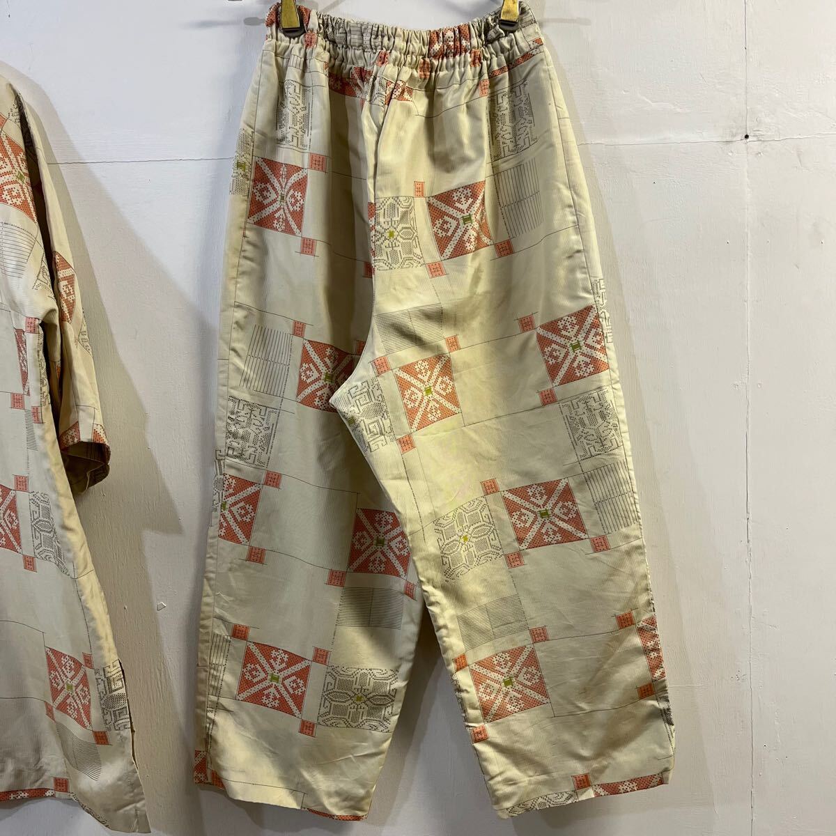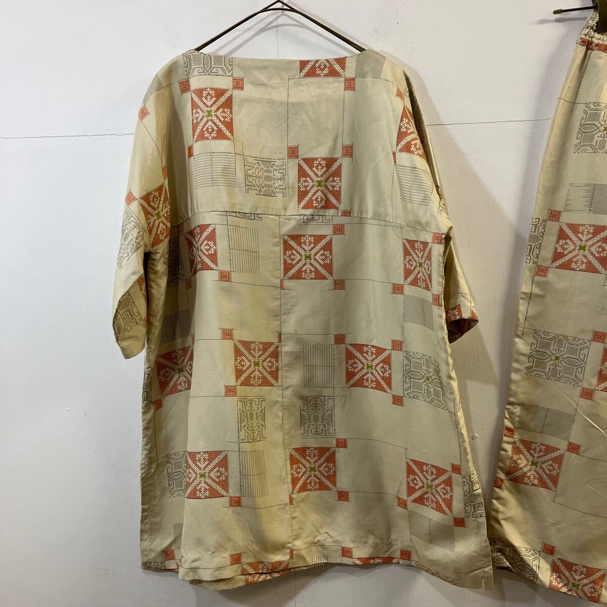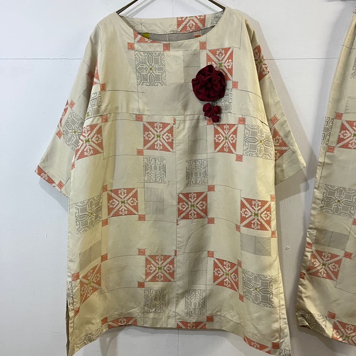 着物リメイク VINTAGE セットアップ チュニック イージーパンツ ブローチ付き 古布 総柄 ウエストゴム ヴィンテージ【送料一律/同梱可能】Gの出品です。