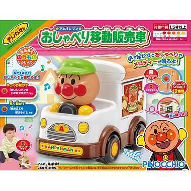 ●本体上部のボタンを押すと、アンパンマンとしょくぱんまんの12種類のおしゃべりが鳴ります。