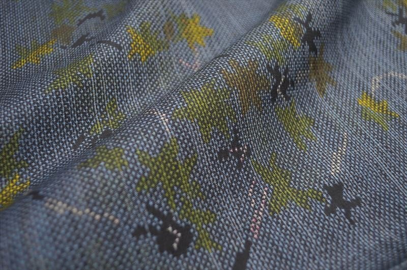 抽象的模様のような柄を一元式にて織り上げた本場大島紬です。