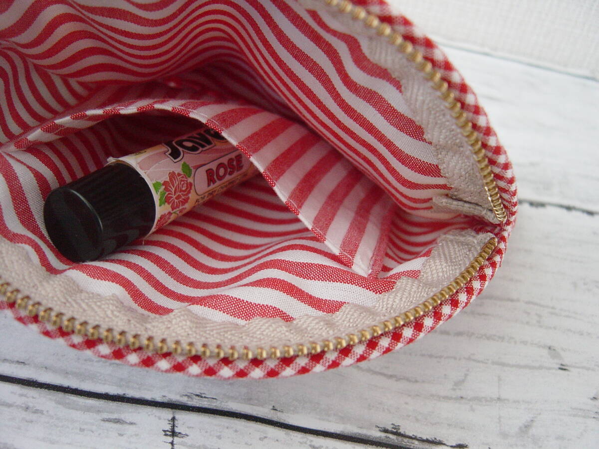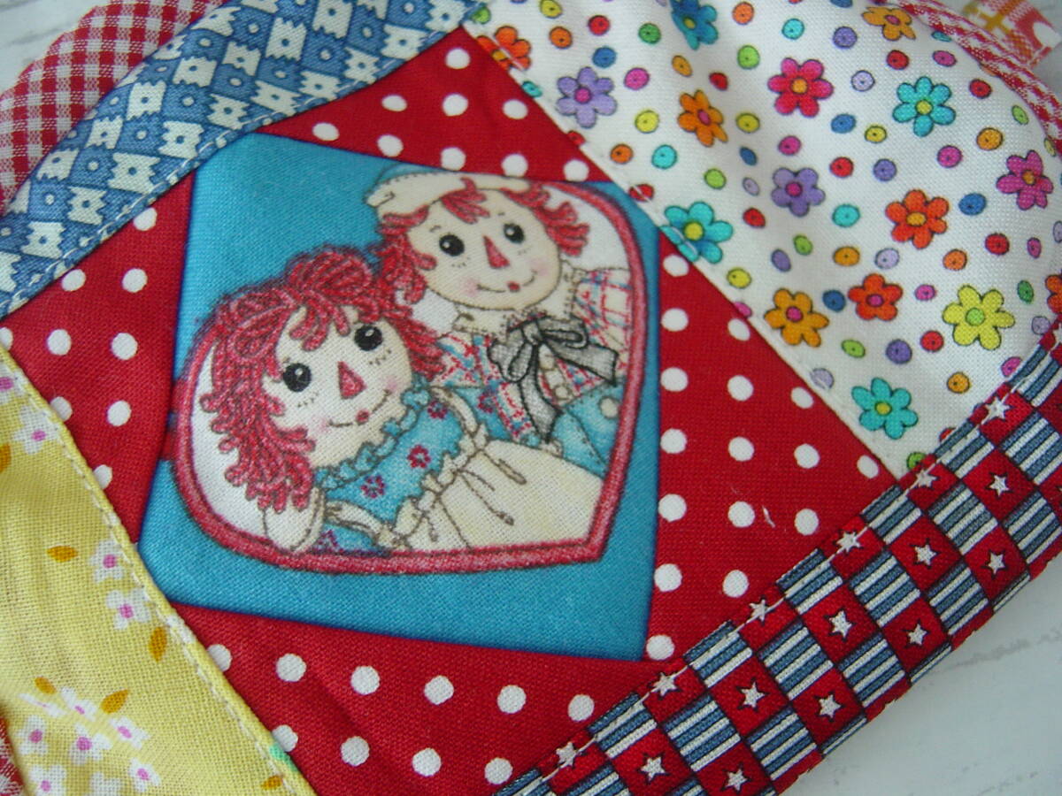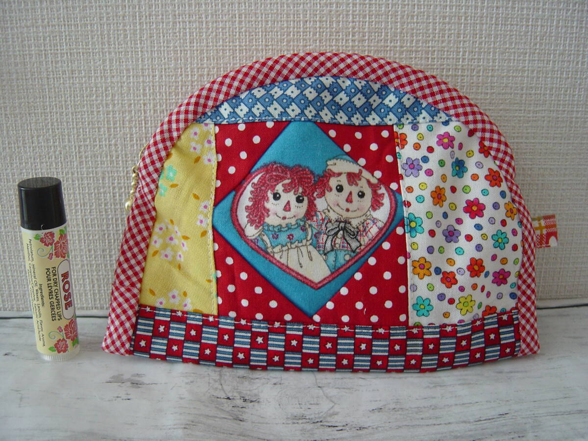 ぺたんこデザインのポーチになります。(*リップは商品には含まれません。ポーチのみの出品です。)サイズは、高さ約11cm・よこ(底部分)16cmになります。YKKファスナー16cmを使用しています。(素人採寸ですので多少の誤差はご了承下さい。) 貴重なラガディ アン&アンディ柄生地を使って薄手のキルトを挟んで仕上げました。(内ポケット付きです。) 趣味で作った素人の作品ですので生地の歪み、たたみしわ、縫い目のズレや曲がり、二度縫い、糸の処理など完璧ではありませんのでお気になさる方はご遠慮下さい。ハンドメイドにご理解頂ける方にお譲りしたいと思います。*上記の説明にご理解下さる方のみご入札よろしくお願いします。