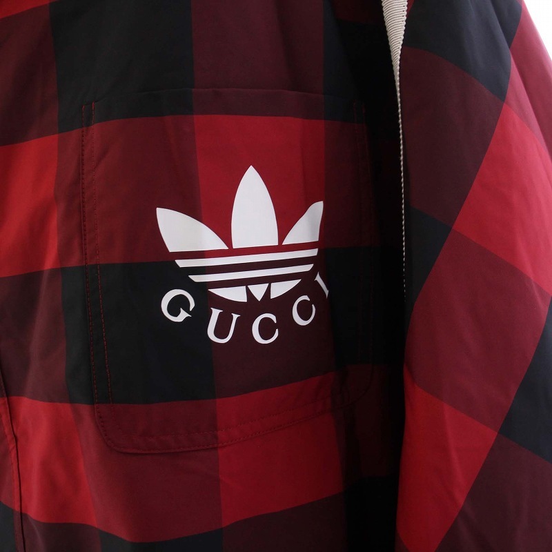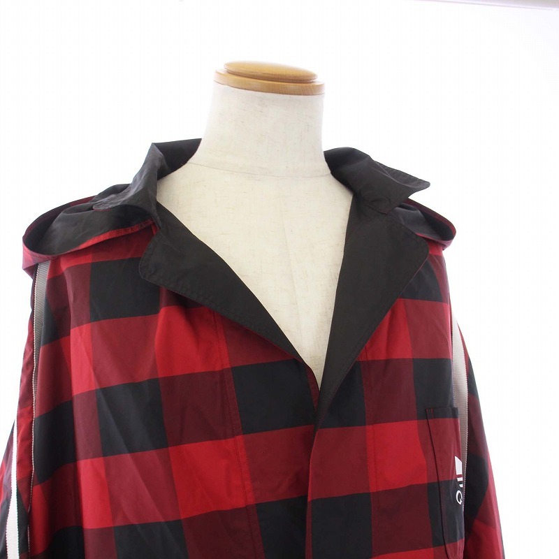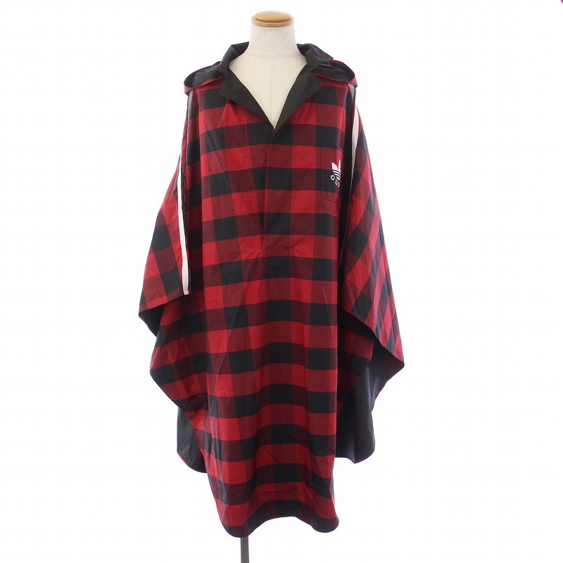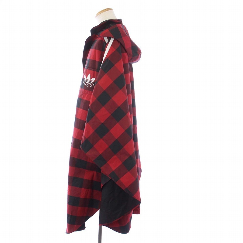 グッチ GUCCI adidas Originals レインコート フーディ ギンガムチェック ロング 3ライン ロゴ プルオーバー M レッド ブラック 716270