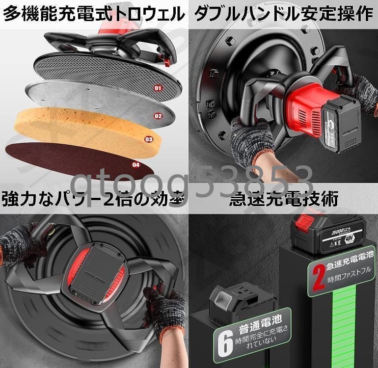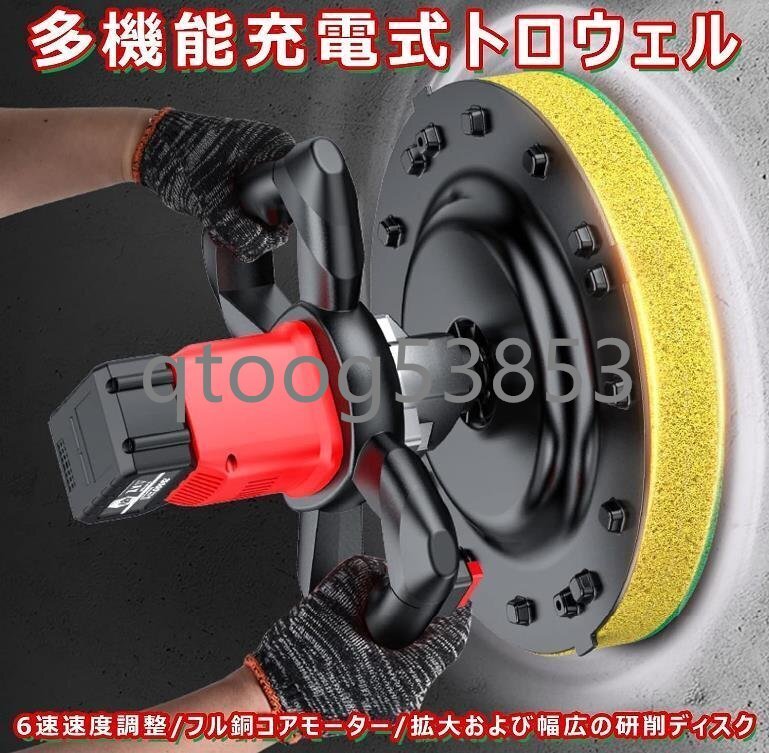 充電式トロウェル コンクリート研磨機 電動コテ スターラー 6速調整可能 壁面平滑化研磨機 土間施工 ムラ取り コテ仕上げ 不陸調整