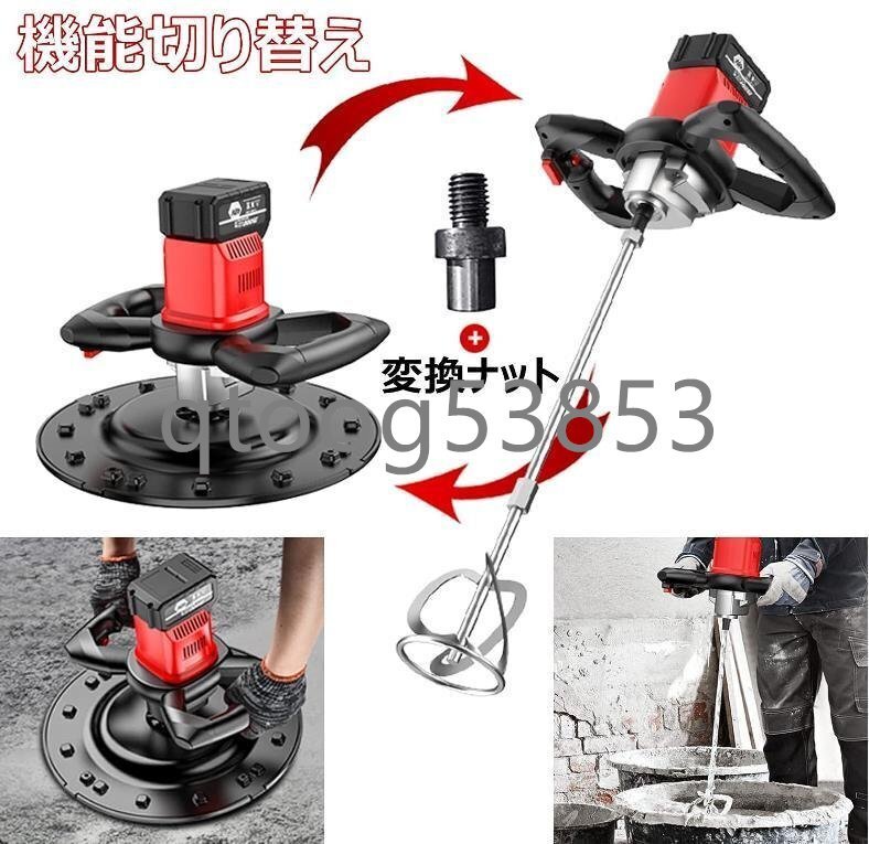 【幅広い用途】多目的、各種中粘度液の混合に適し、セメント、コンクリート、グラウト、泥、ペンキ、モルタルなどを含む。 建設作業、プロの建設チーム、または民家の改築に役立ちます。床の研磨など。充電式トロウェルモルタルやセメントの凹凸を簡単に取り除き、広い面積でコンクリートの床を平らにすることができます。作業効率をスピードアップし、時間と労力を節約し、作業結果の品質を向上させます。この製品は、他の研磨機のさまざまな直径 38cm アクセサリーにも適しています