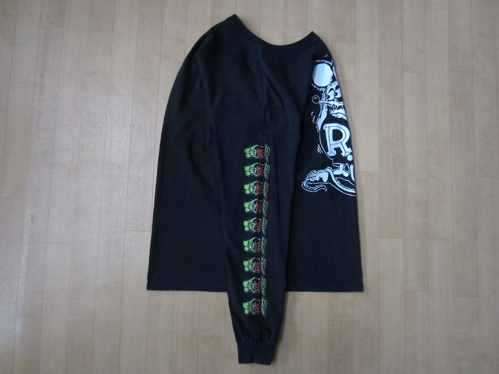 Rat Fink 袖プリント 長袖 Tシャツ M ブラック ラットフィンク 連発 ロンT ED ROTH エドロス ホットロッド MOONEYES ムーンアイズ ART 古着