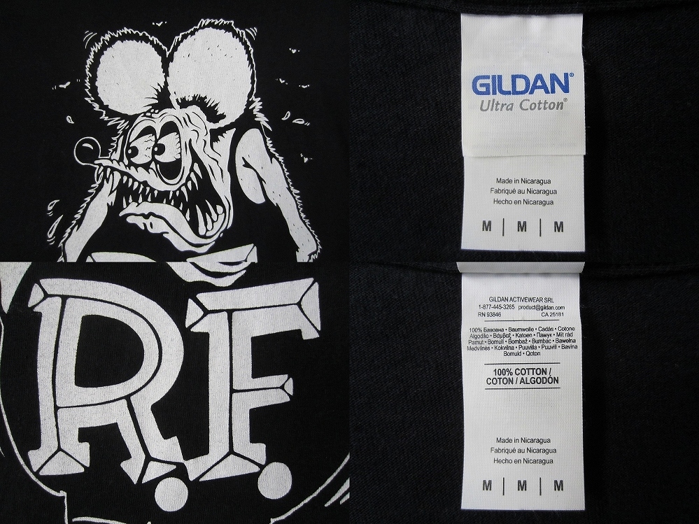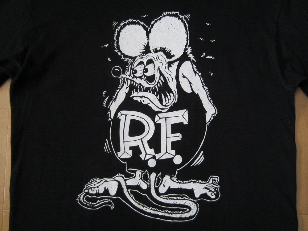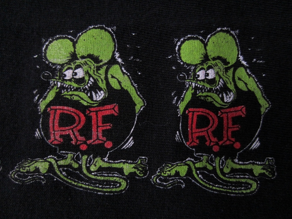 2001年に惜しまれつつもこの世を去った、アメリカが誇る「Hot Rod Builder(ホットロッドビルダー/Hot rod/ホットロッド)」にして、「Lowbrow Art(ロウブロウアート)」、「Pinstripe(ピンストライプ)」、「Brush Art(ブラシ・アート)」、「Custom Culture(Kustom Kulture/カスタムカルチャー)」界の偉人「ED ROTH(エドロス/ED "BIG DADDY" ROTH(エド・"ビックダディー"・ロス)」氏が、友人と休日を過ごしていた、1961年のクリスマスに、「Disney(ディズニー)」を象徴する、誰もが一度は見たことがあるであろうキャラクター「ミッキーマウス(Mickey Mouse)」のお父さんをイメージして描いた落書きから誕生した、「アンダーグラウンド・カルチャー(underground culture)」、「社会風刺(social satire/satirize society)」、「ブラックユーモア(black humor)」等の要素を漂わせる、目が飛び出た小太りの汗っかきのネズミのキャラクターとして知られる、〔Rat Fink(ラットフィンク)〕の、長袖Tシャツ表面に、インパクトのある〔Rat Fink(ラットフィンク)〕のプリント、左右の袖(腕)に〔Rat Fink(ラットフィンク)〕の連発プリント(左袖に9連発、右袖に9連発の計18体のRat Fink(ラットフィンク)のプリント)が施された、〔フロントプリント&袖プリント・長袖Tシャツ(クルーネック・ロングスリーブ・Tシャツ/Crew Neck Long Sleeve T-Shirt/ロンT)〕になります。