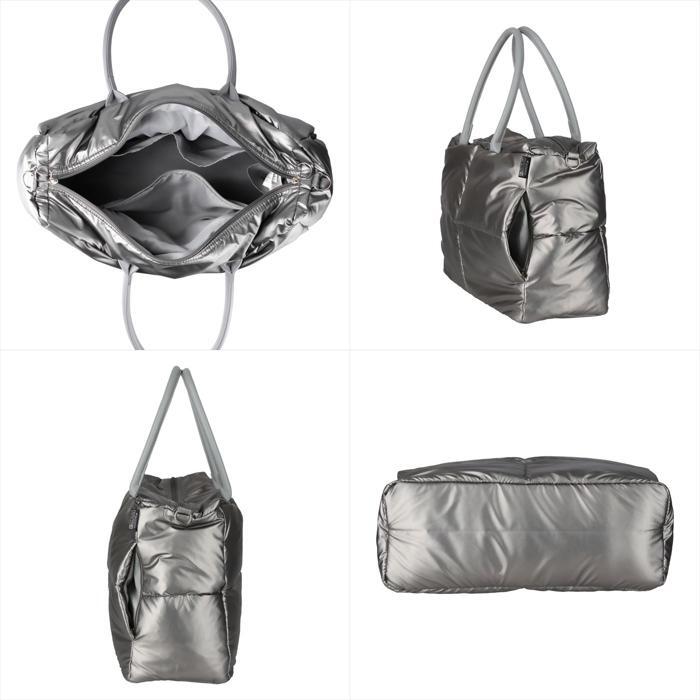 素材 | 表地: ポリエステル/裏地:ポリエステル 持ち手:合成皮革/中綿:フェザー、ダウン |