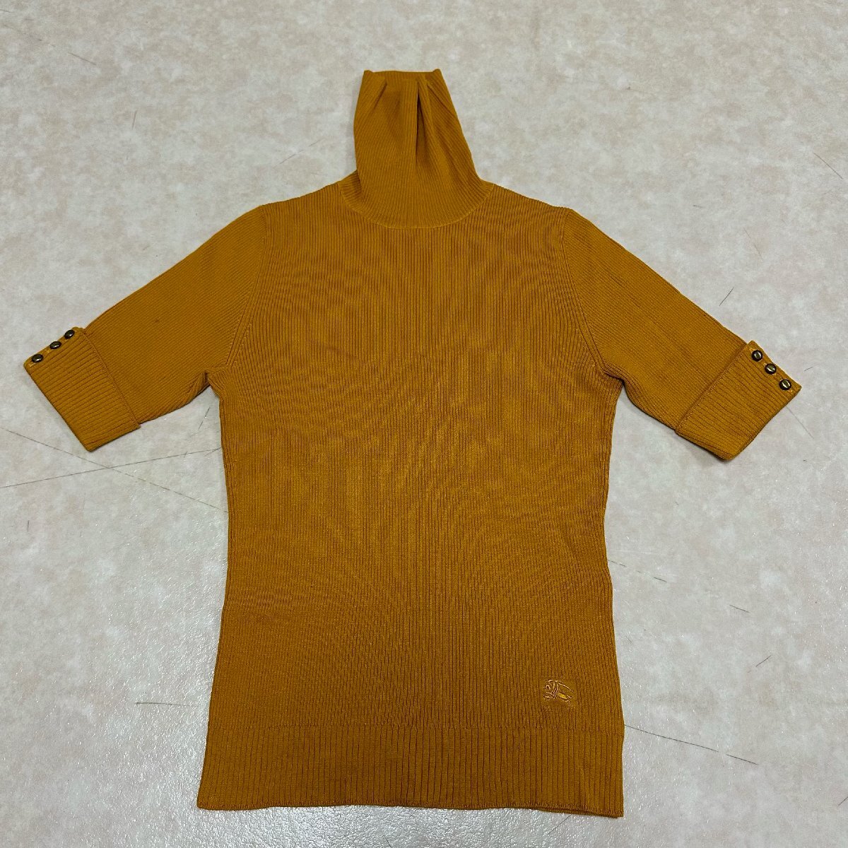 | バーバリー BURBERRY ニット カットソー 半袖 タートルネック 1号 コットン/カシミア オレンジ系統 三陽商会 中古美品 | |
