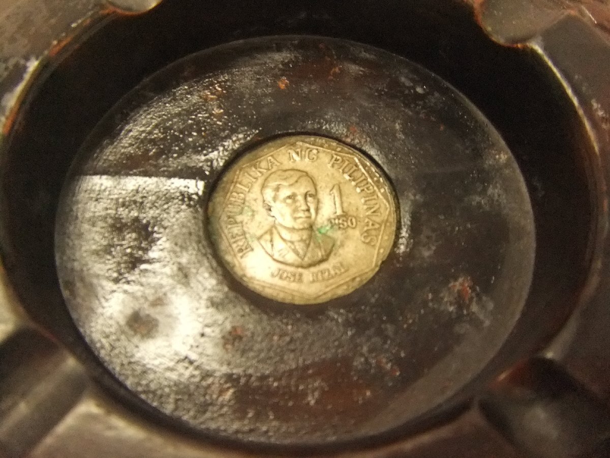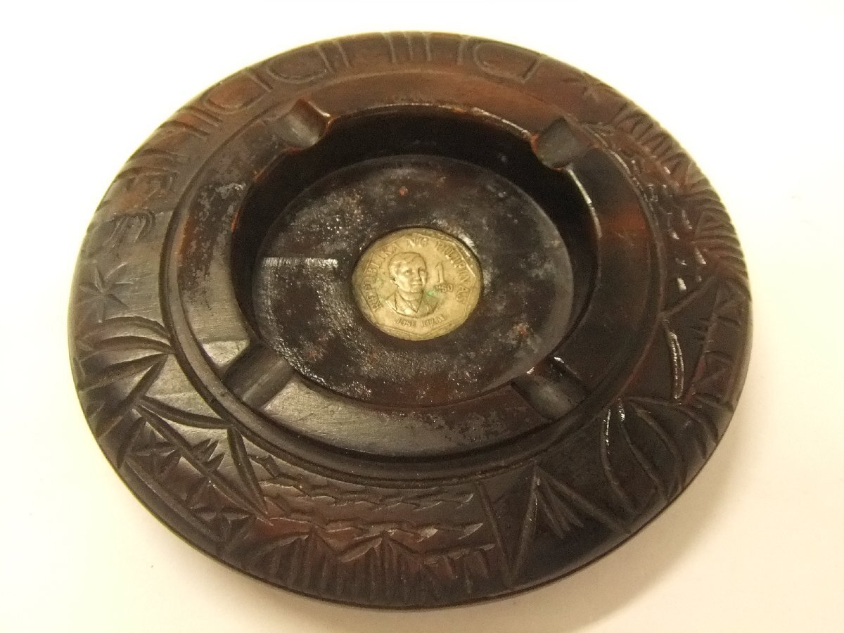 フィリピン 灰皿 木製 コイン 直径約15センチ