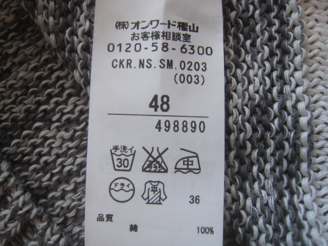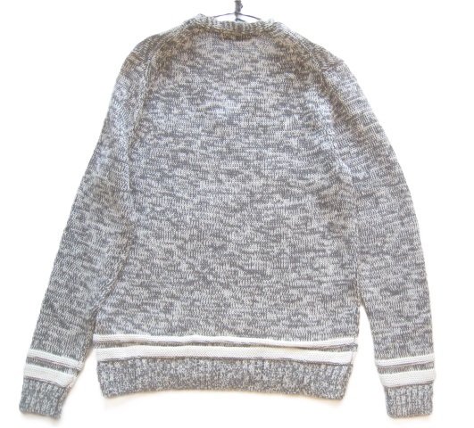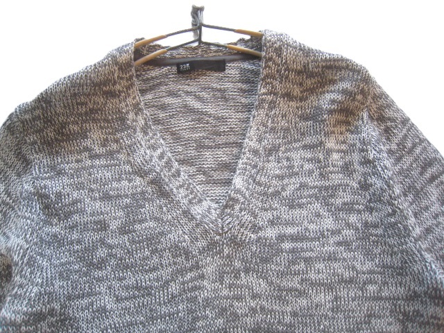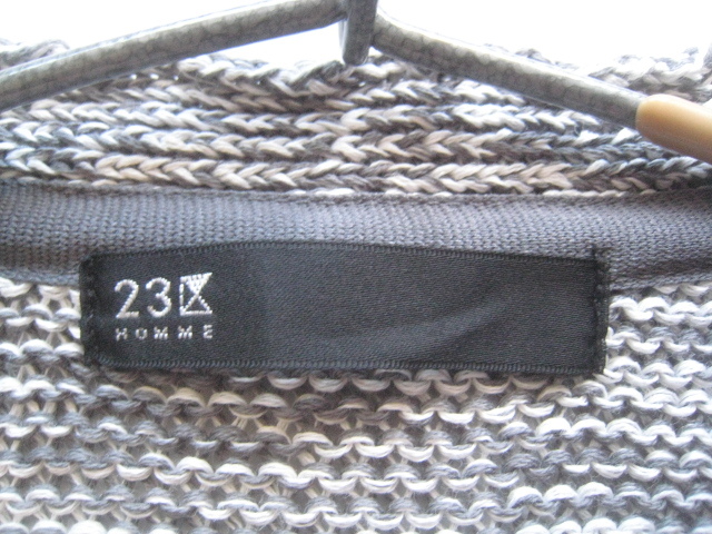 美品!!23区オム 23区HOMME*美シルエット Vネック ミックス織りコットンニットセーター 48 実寸M グレー×白 オンワード樫山