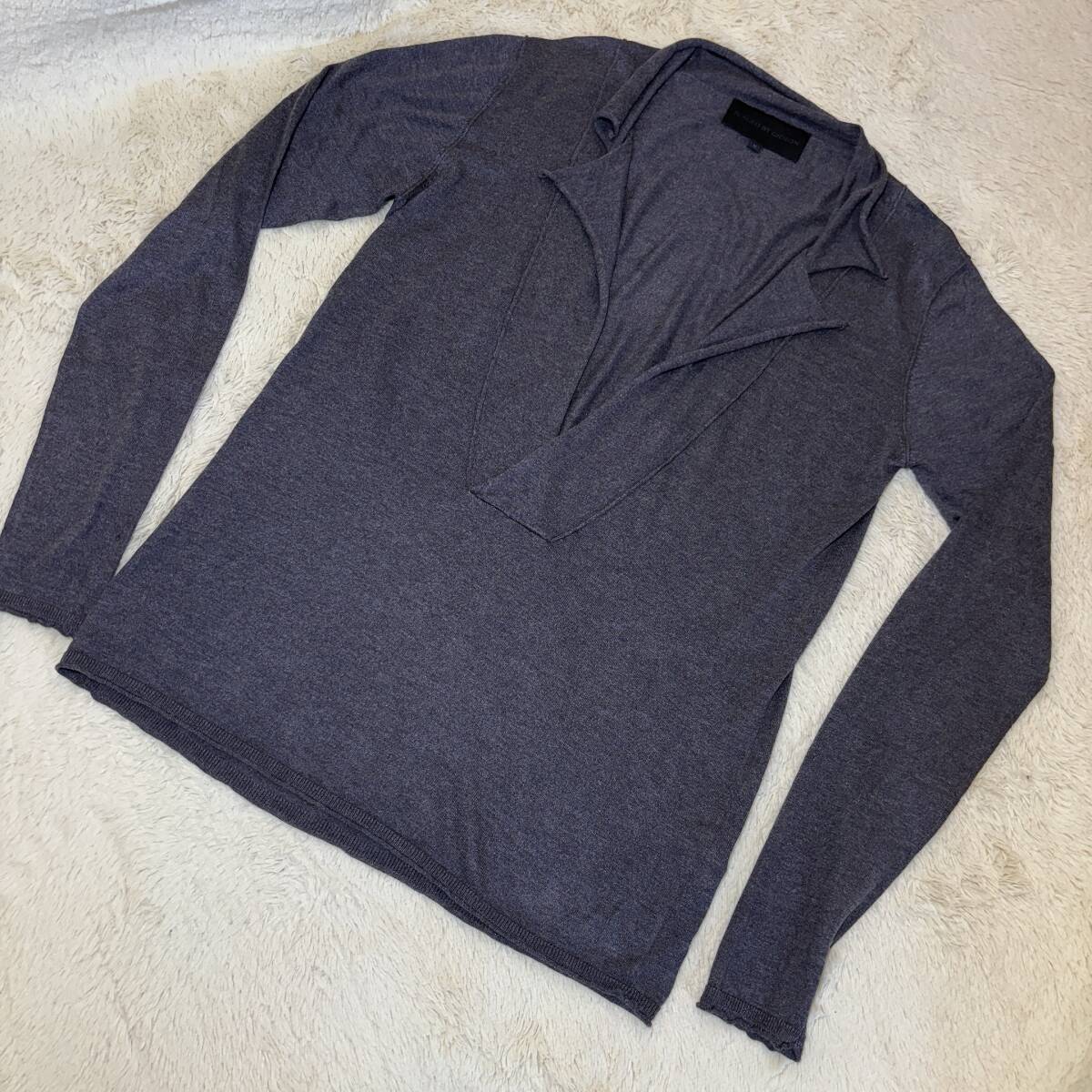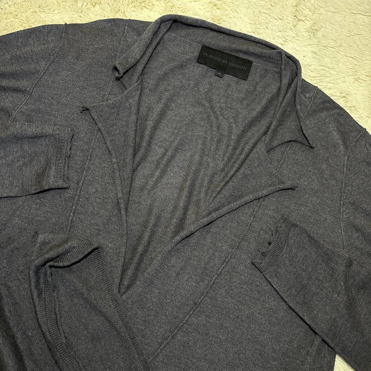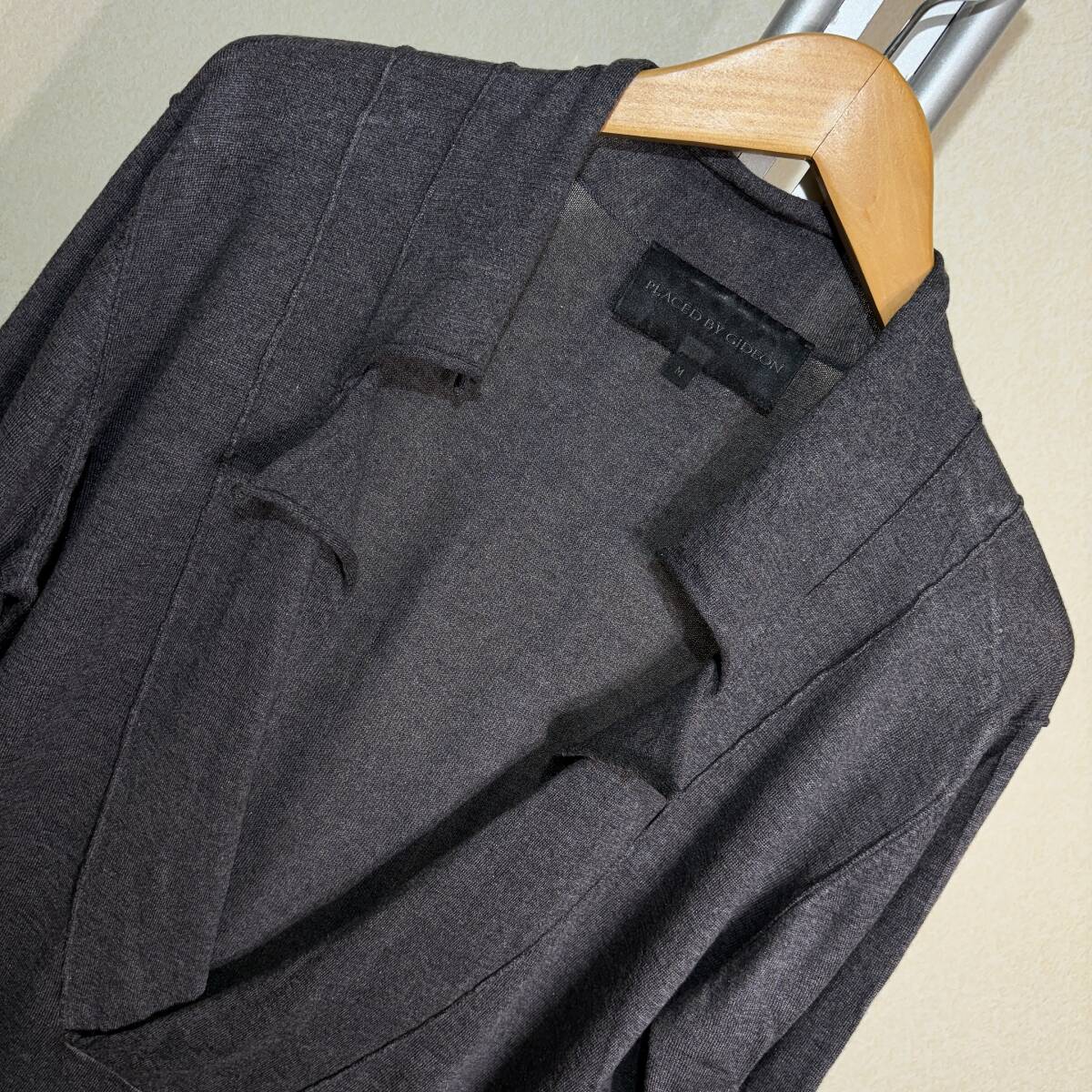 X260■PLACED BY GIDEONプレイスドバイギデオン★カシミヤ混シルク/チャコール★デザインセーター■M | ||||||||||||||||||||