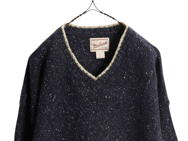 | 商品名 | 90s USA製 ウールリッチ ニット セーター メンズ L / 古着 90年代 オールド Woolrich Vネック ウール ミドルゲージ リンガー タイプ ネップ |