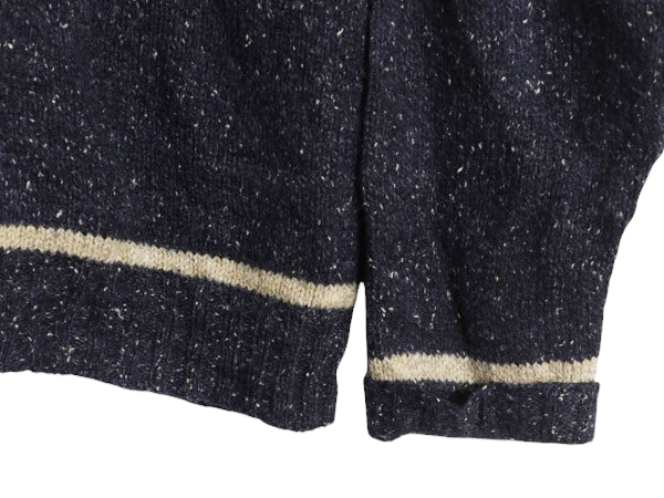 90年代のオールド 旧タグ ウールリッチの長袖ニットセーターです。 素材は、60% WOOL : 30% ACRYLIC : 10% COTTON ストレスのない着心地の快適なミドルゲージ 保温性の高い素材が使用されています。 希少な MADE IN USA ( アメリカ製 ) 合わせやすい、ネイビーボディ ネップの入る温かみのあるデザイン 首と裾、袖先にグレージュのラインが入るリンガータイプ デザインの良いアクセントになっています ゆったりとした人気のシルエット シンプルながら気のきいた オールド ウールリッチのグッドデザイン 時代に左右されないオーセンティックな 使い勝手の良い長く愛用できる お勧めの商品です。 |