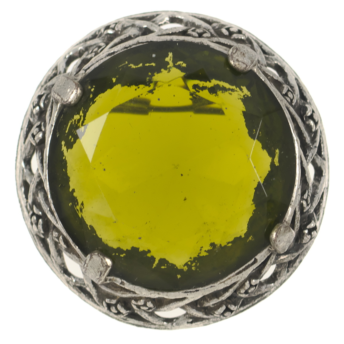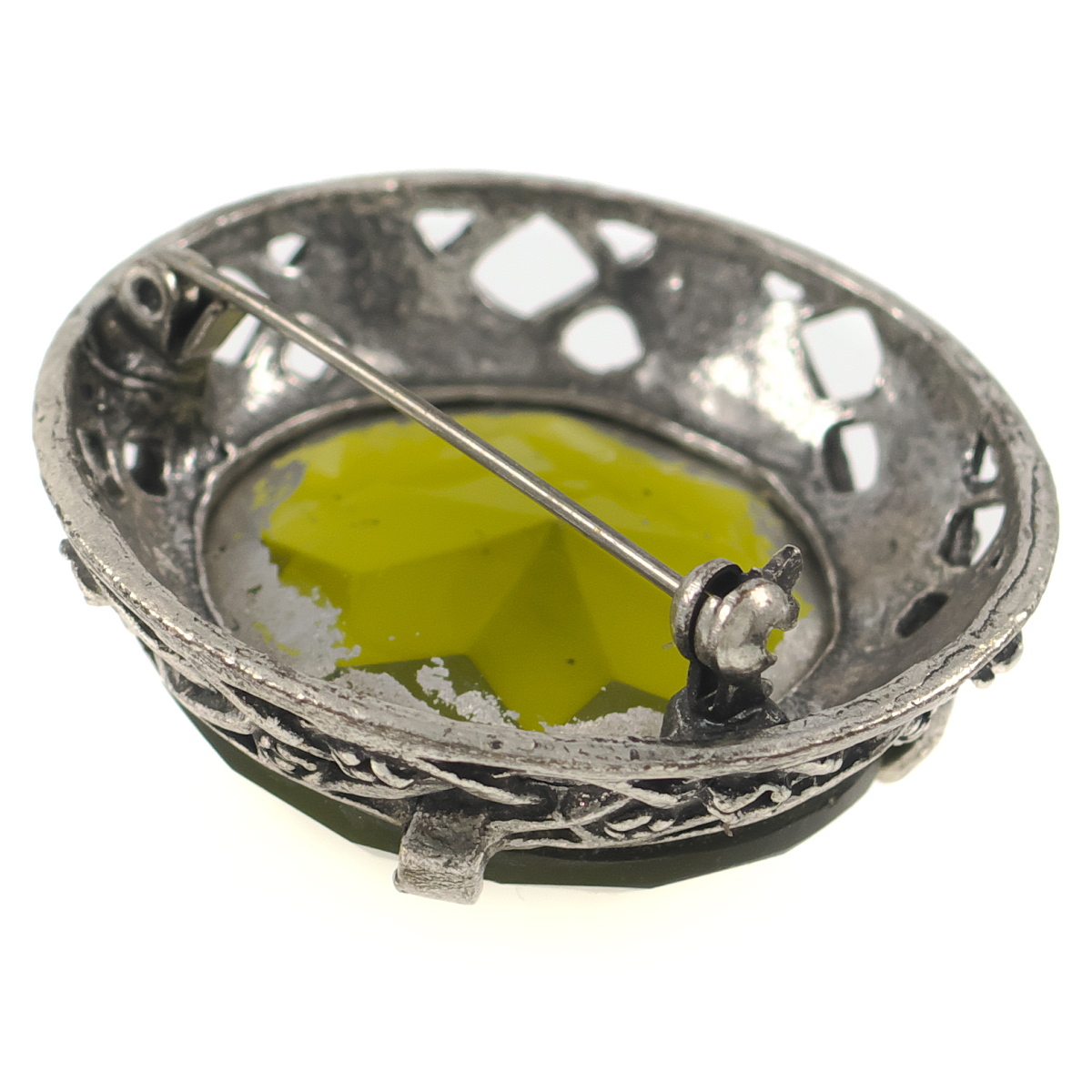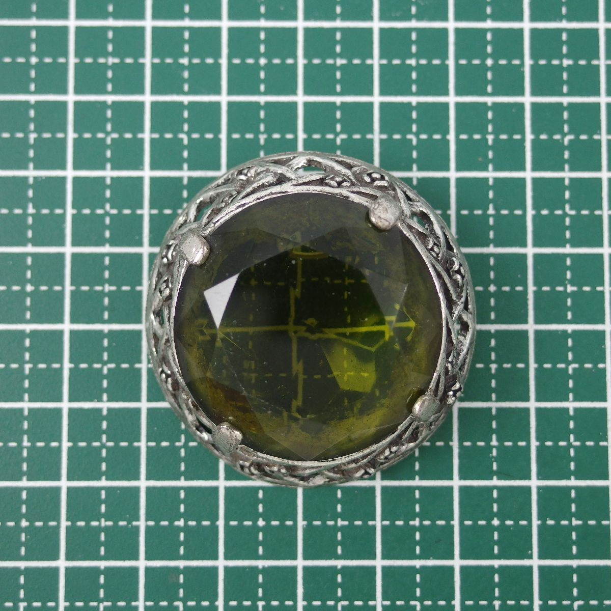 UK2691◆ 大粒 オリーブグリーン色 ガラスストーン 色石 フラワーモチーフ ケルト 英国 イギリス ◆ ヴィンテージブローチ ◆