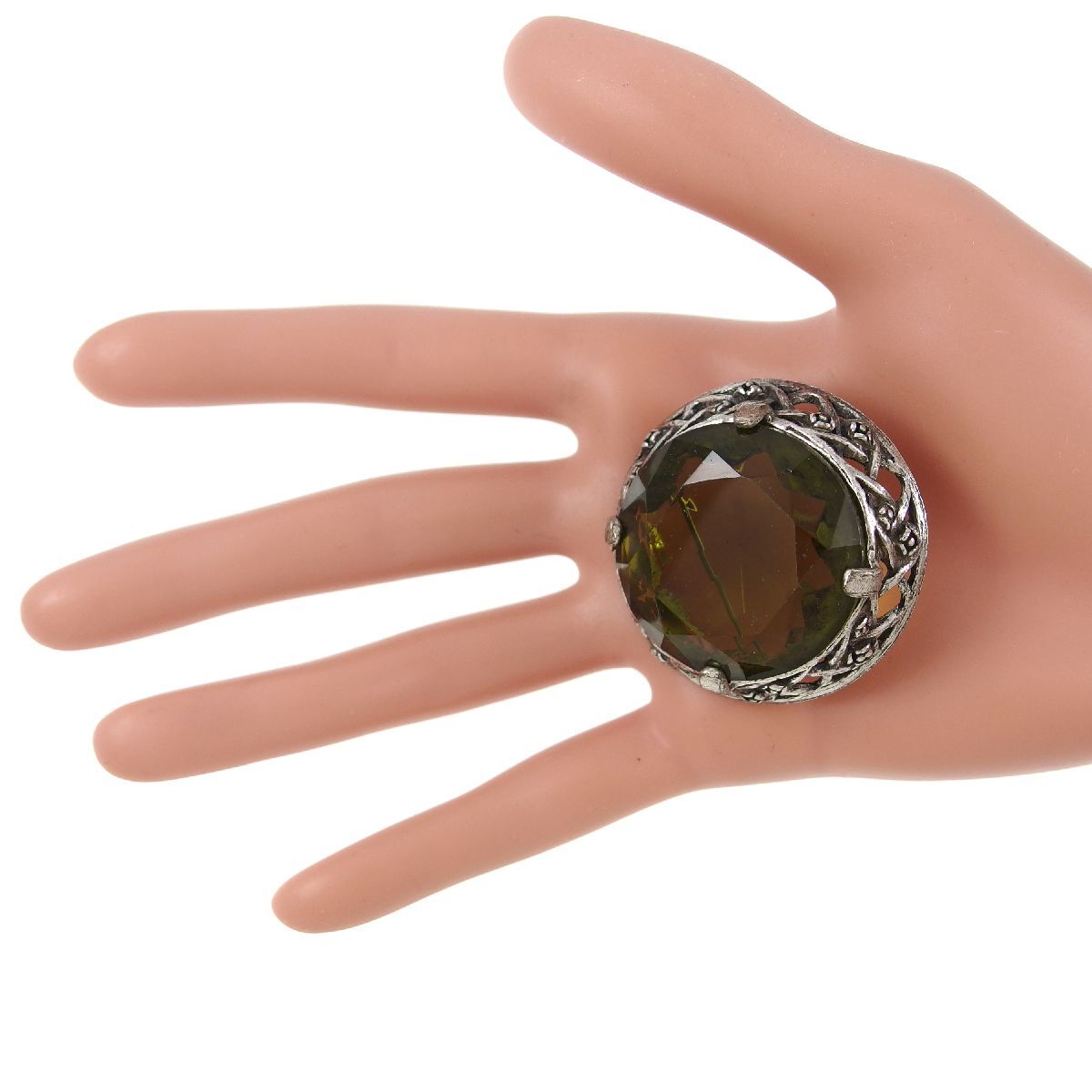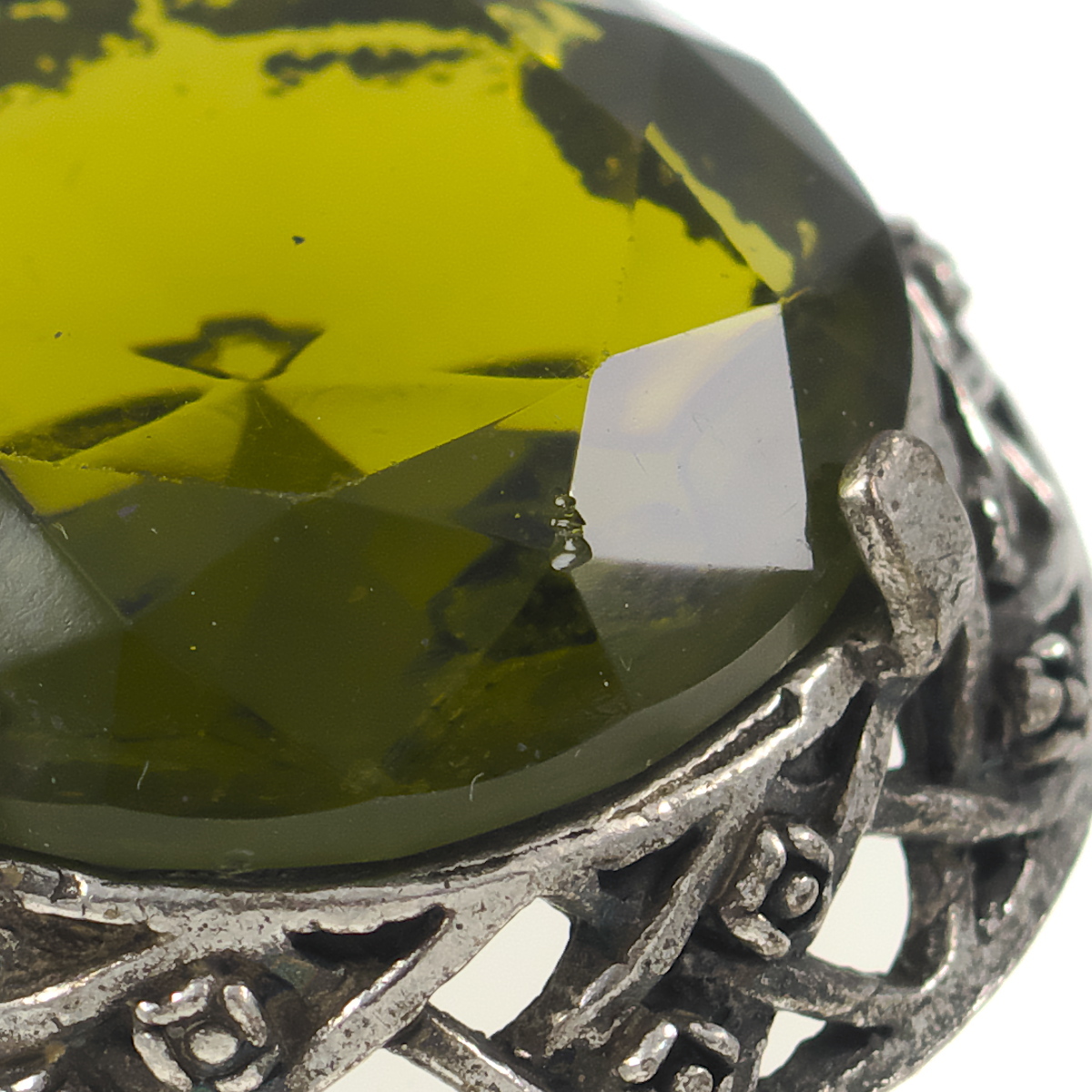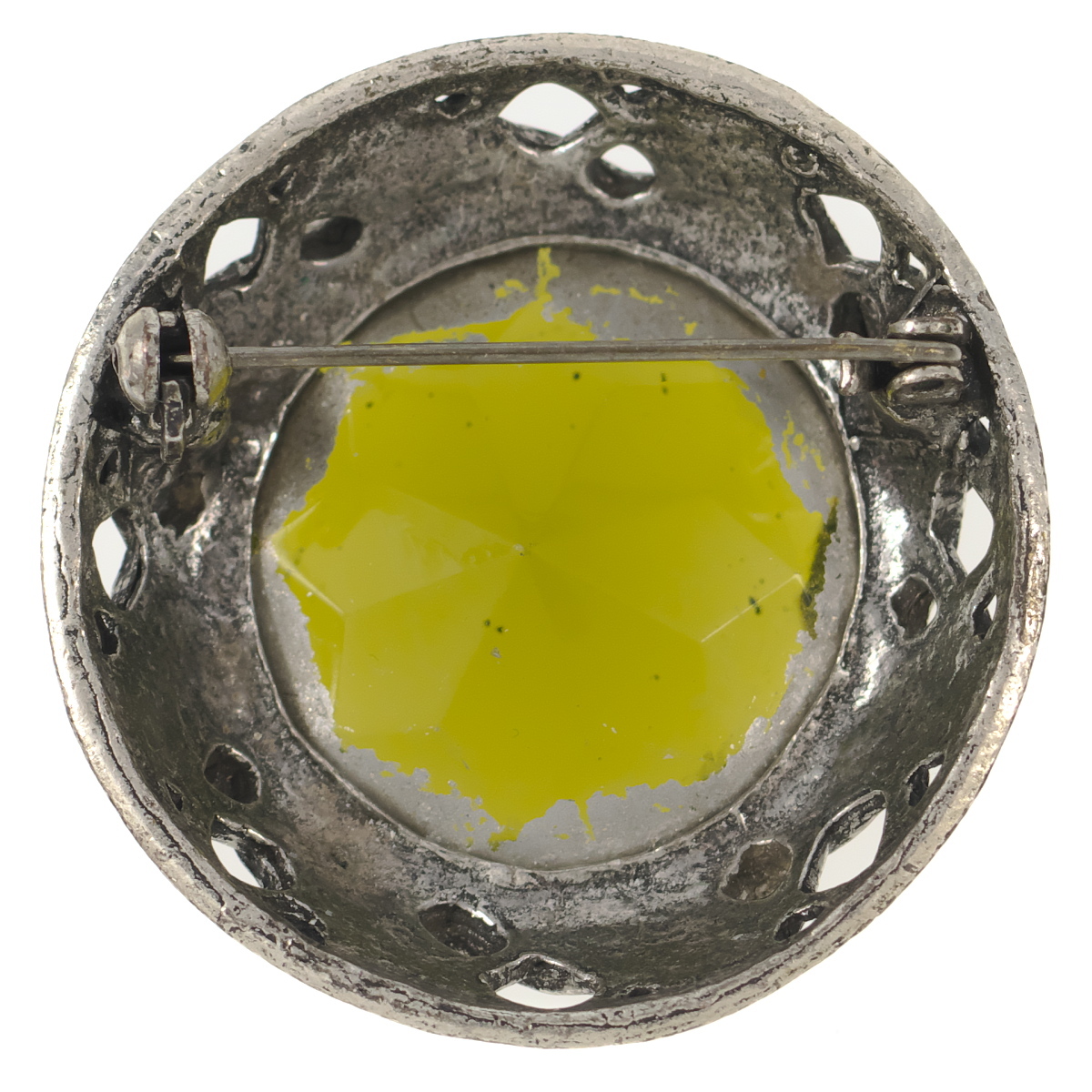 UK2691◆ 大粒 オリーブグリーン色 ガラスストーン 色石 フラワーモチーフ ケルト 英国 イギリス ◆ ヴィンテージブローチ ◆