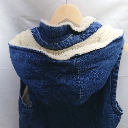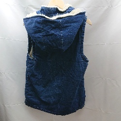 ◇ ZIP FIVE ボア ジップアップ フード ノースリーブ デニムベスト サイズL ブルー系 メンズ E