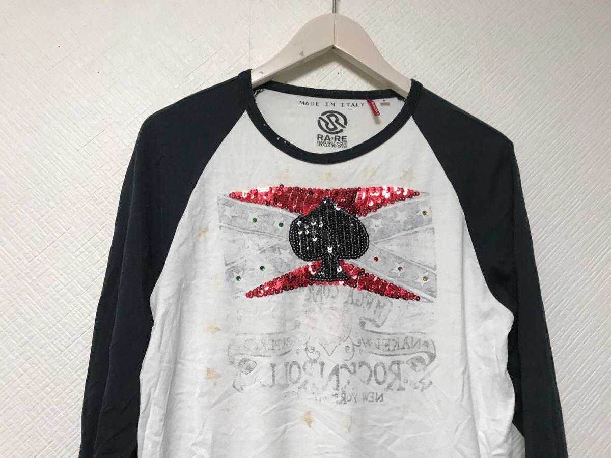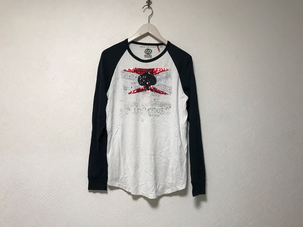 【商品名】本物ラーレRAREコットンプリントダメージ加工ラグランスパンコール長袖ロンTシャツメンズサーフアメカジミリタリーストリートスケーターワークビジネススーツモードゴルフドレスバイカーロックS黒ブラック白ホワイトイタリア製