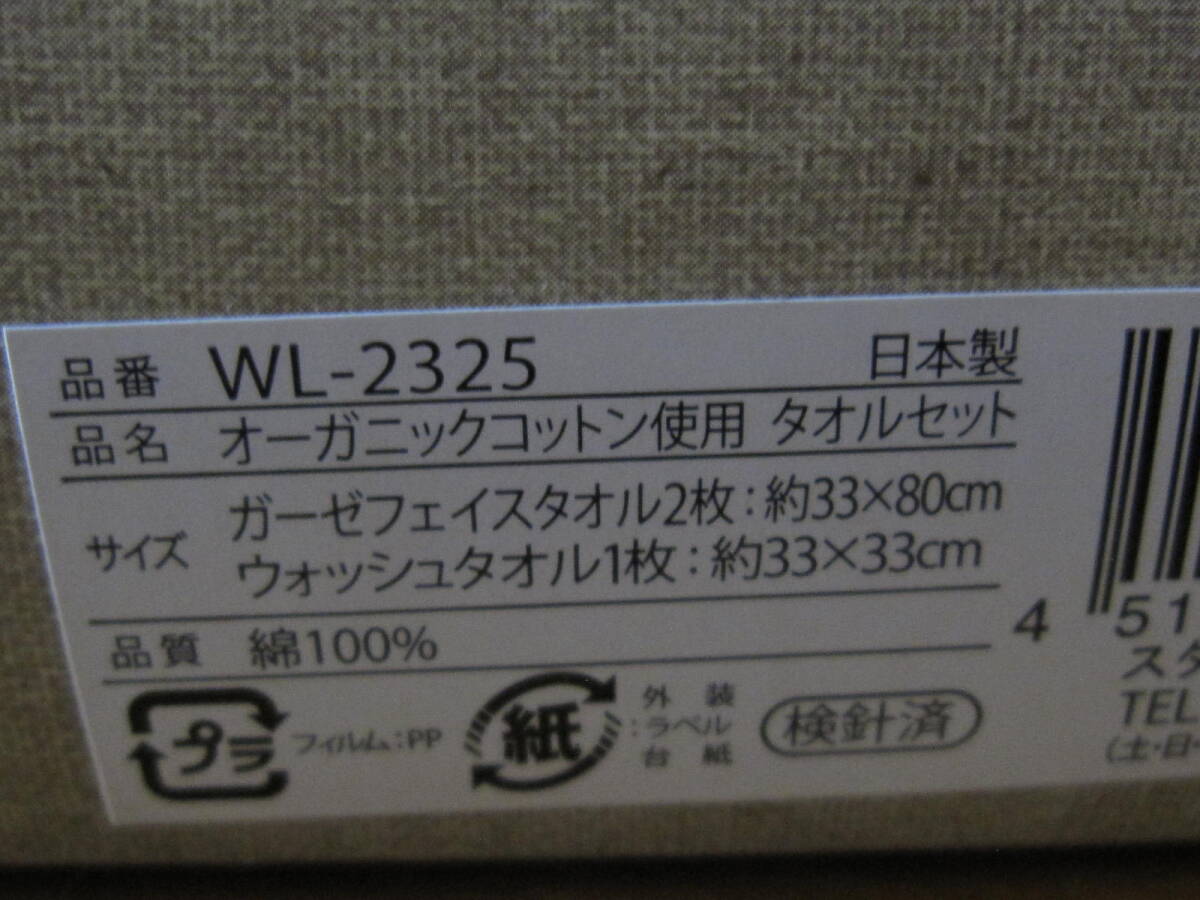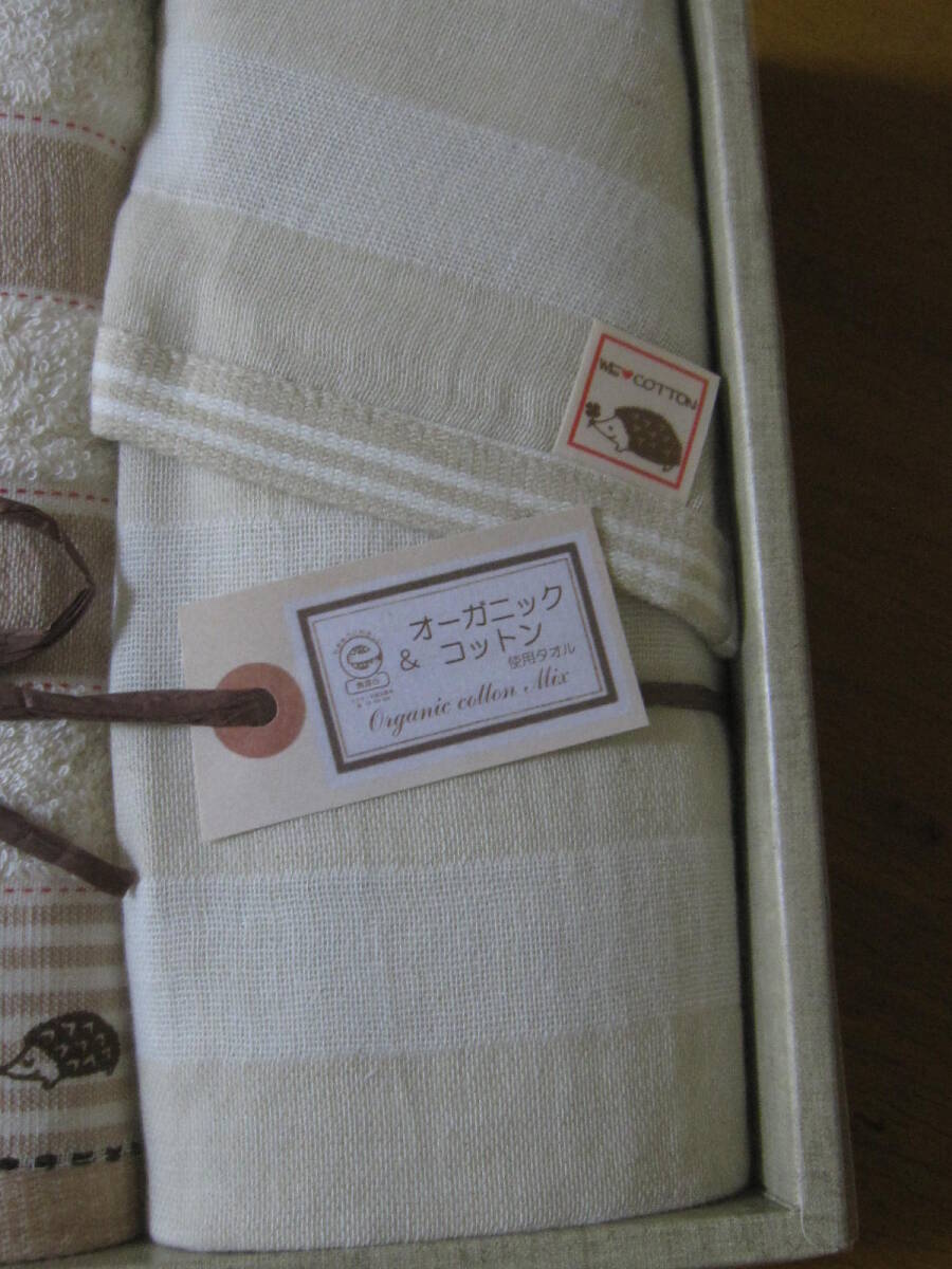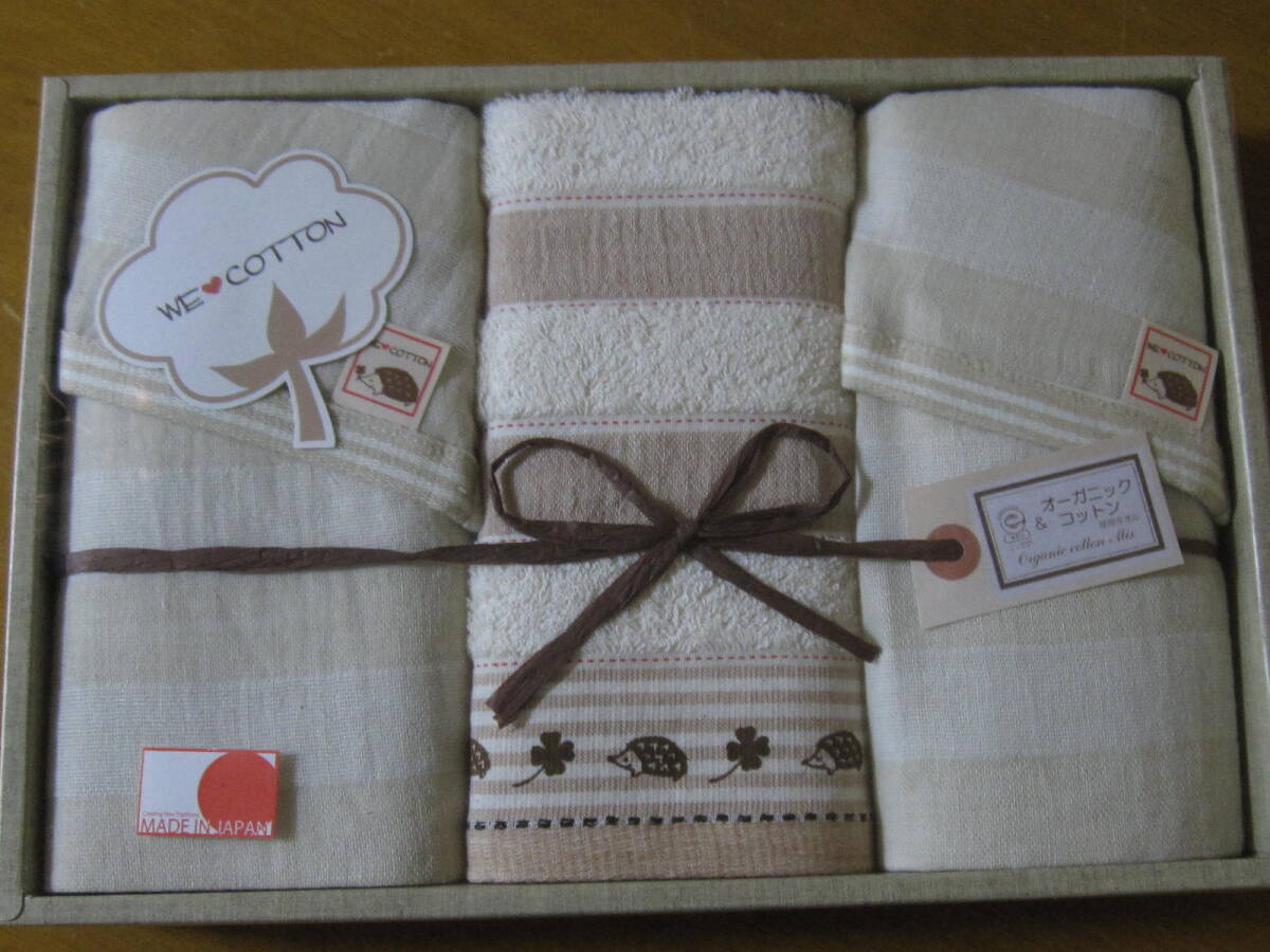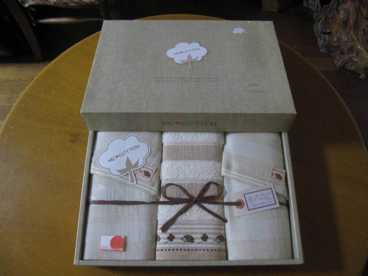 オーガニック タオル 新品 3枚 セット ハンド フェイス 模様 日本製 未開封 ギフト 箱有 贈答 春 秋 冬 可愛い お洒落 綿 結婚 祝 未使用