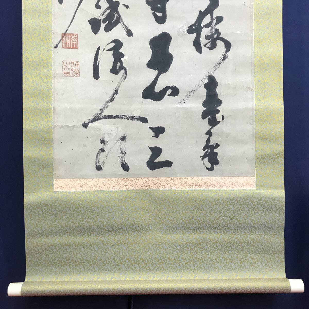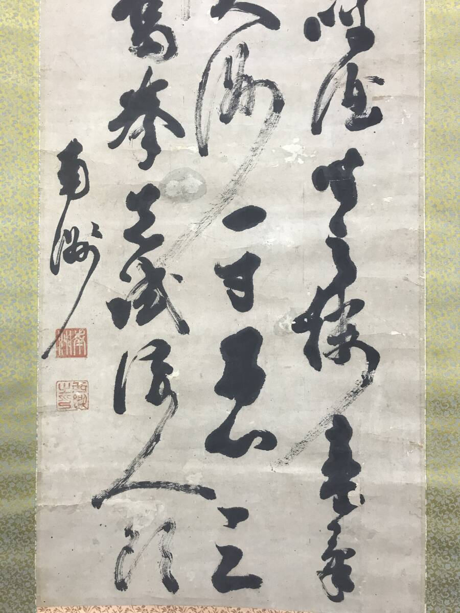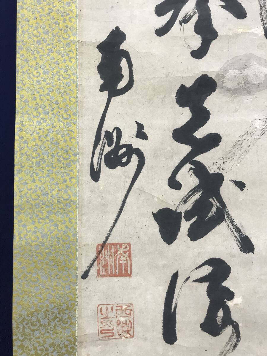 【作品状態】 本紙は紙本です。本紙は時代感あり、全体に汚れシミ、多数の抜け補修痕あります。表装は概ね良好です。