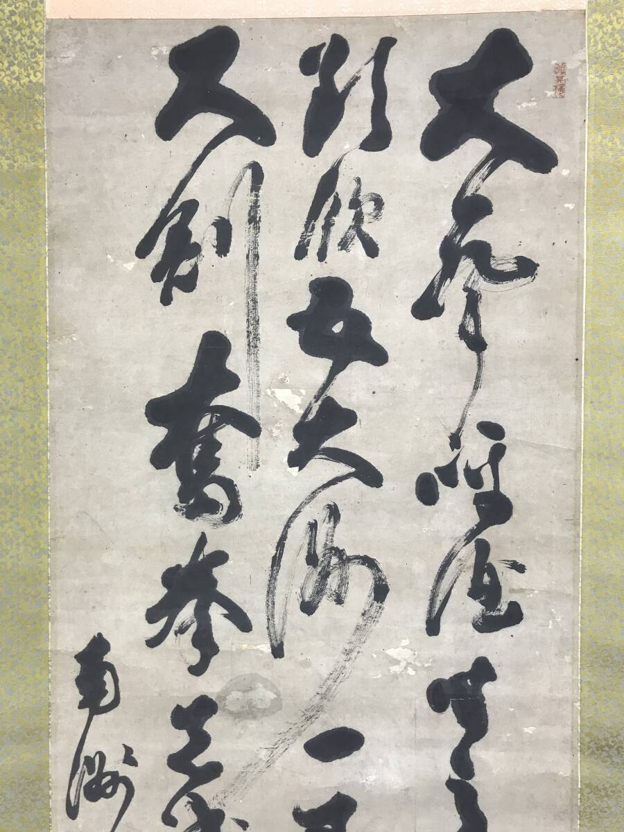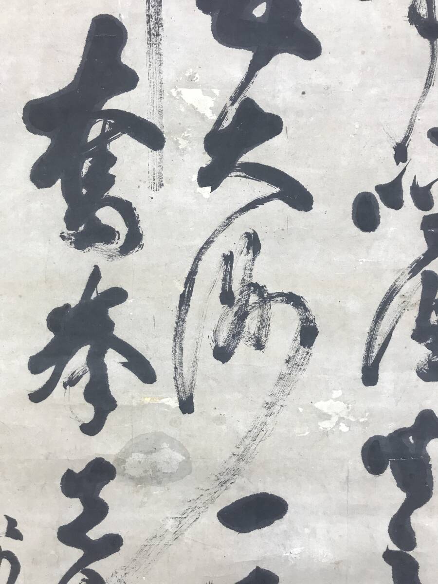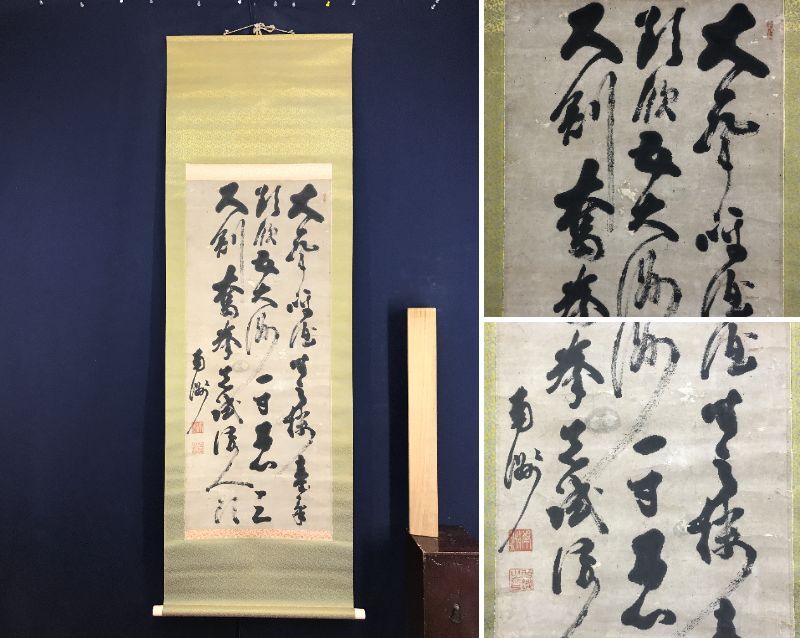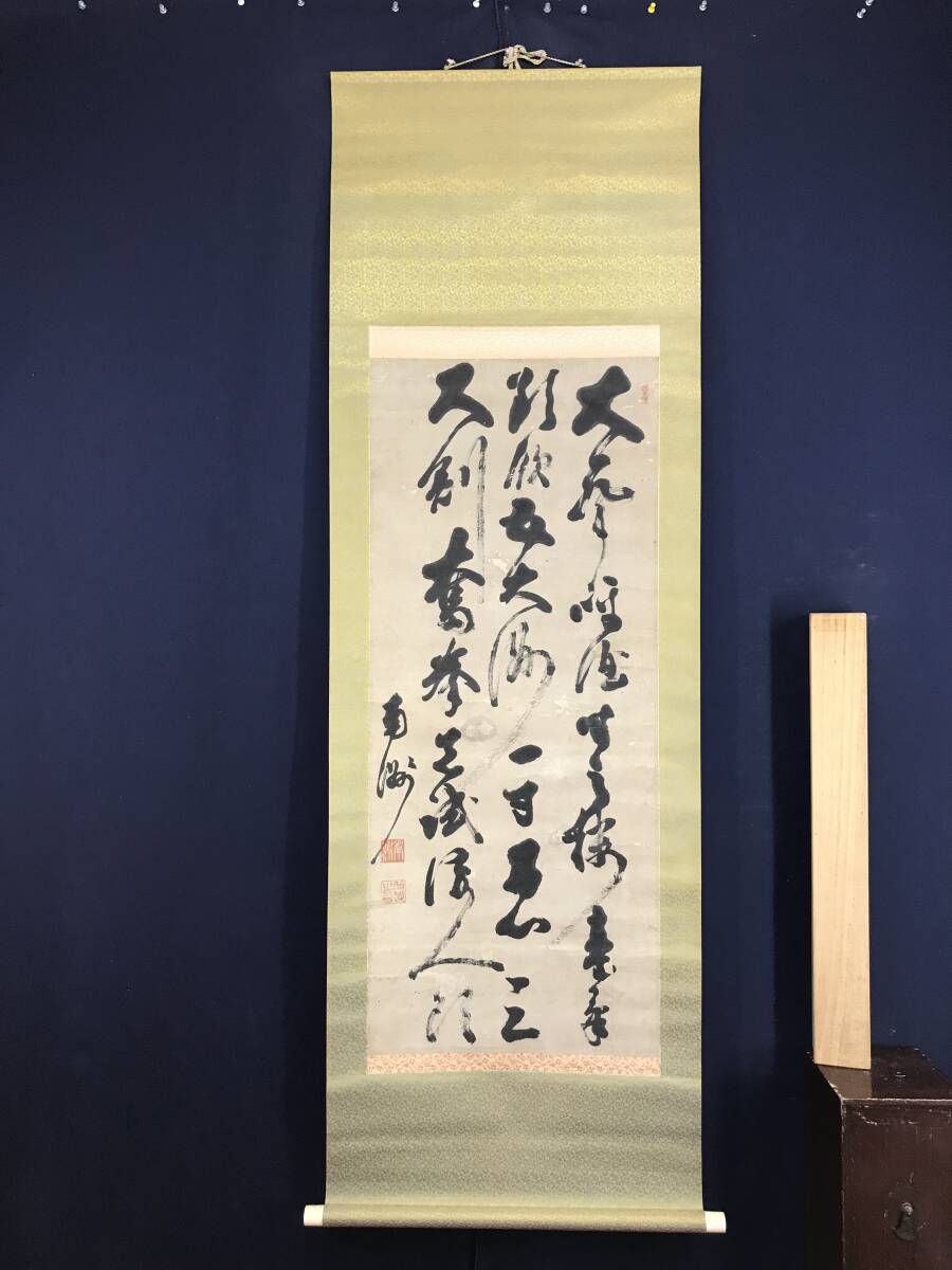 【作品状態】 本紙は紙本です。本紙は時代感あり、全体に汚れシミ、多数の抜け補修痕あります。表装は概ね良好です。