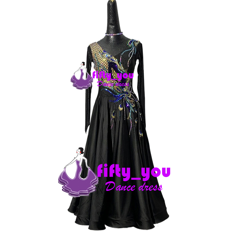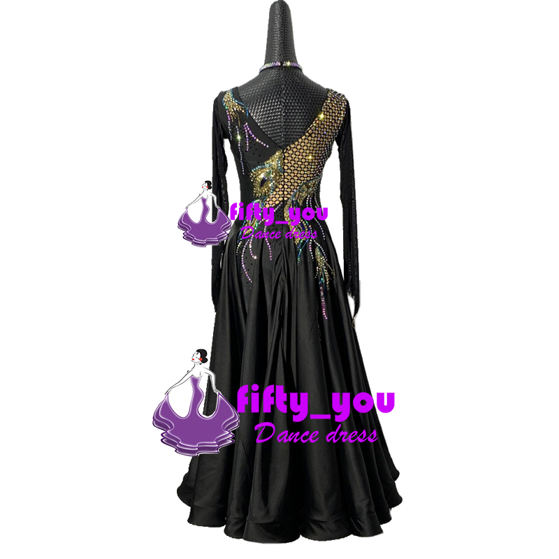 新品fifty_youレディース社交ダンス衣装 サイズセミオーダー  モダン衣装スタンダードドレス  競技高品質ドレス 上品デザイン 黒色
