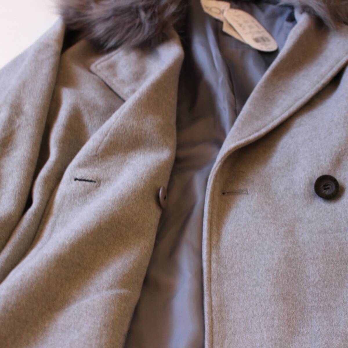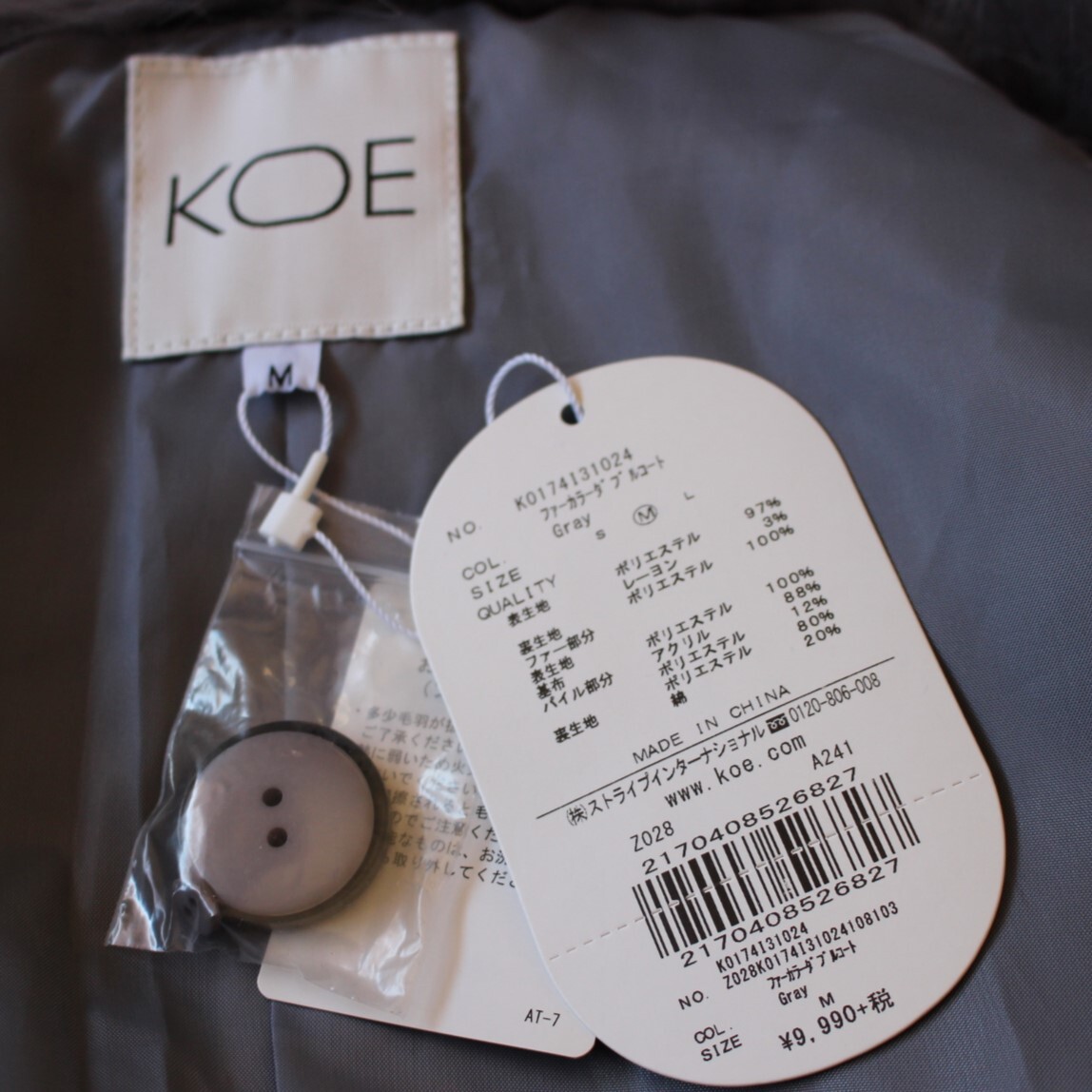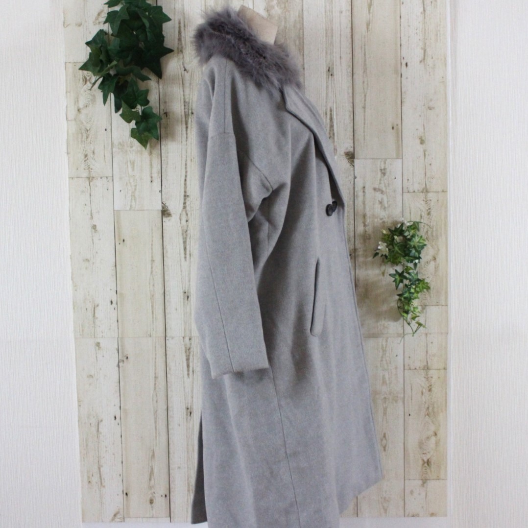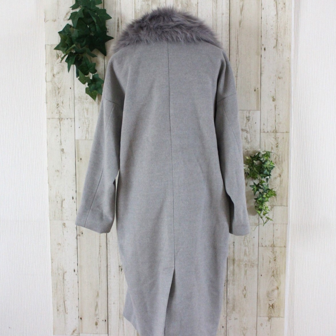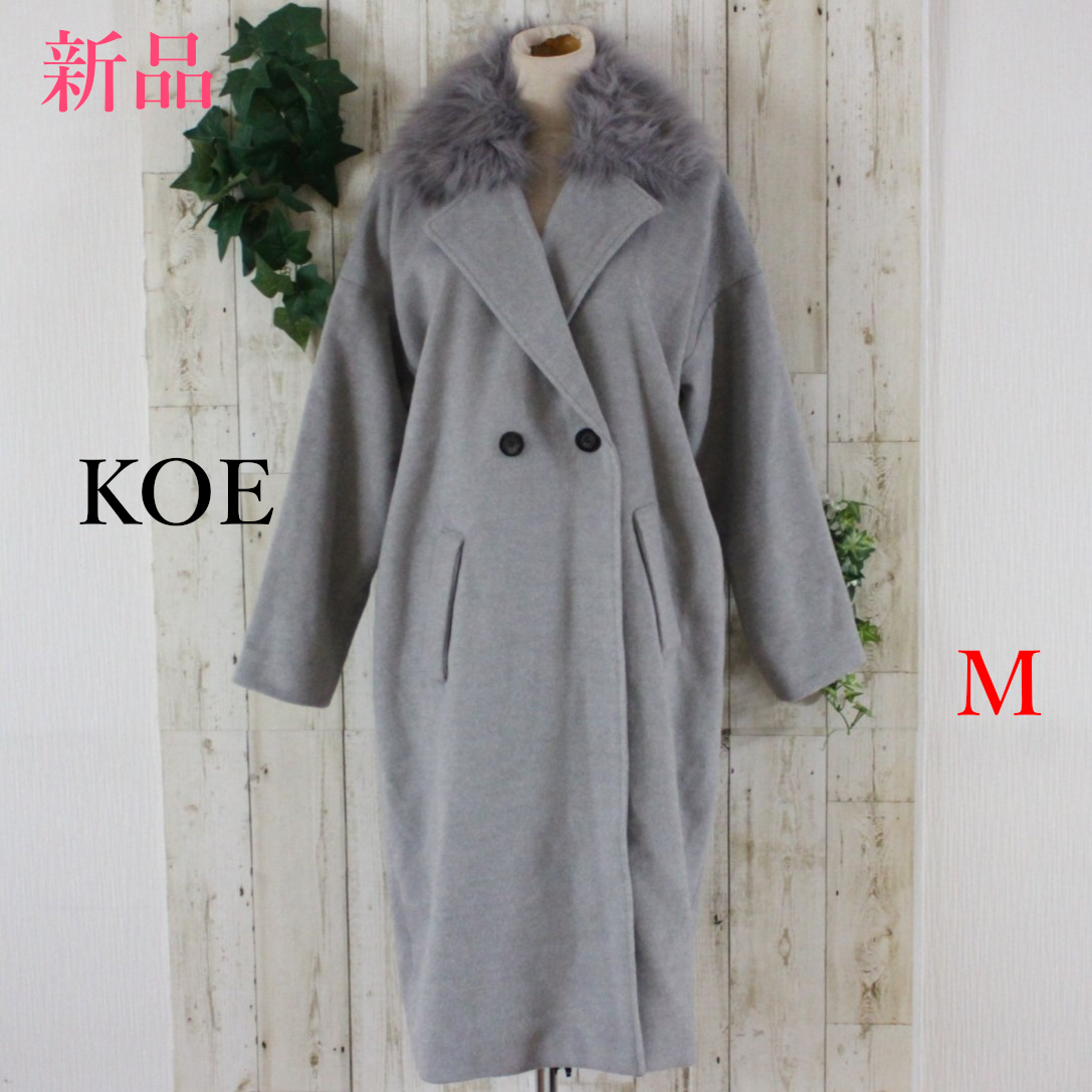 新品★KOEコエ★グレーファーカラーダブルコート 2wayスタイル Mサイズ 冬物アウター チェスターコート ファー取り外し可能 ロングコート