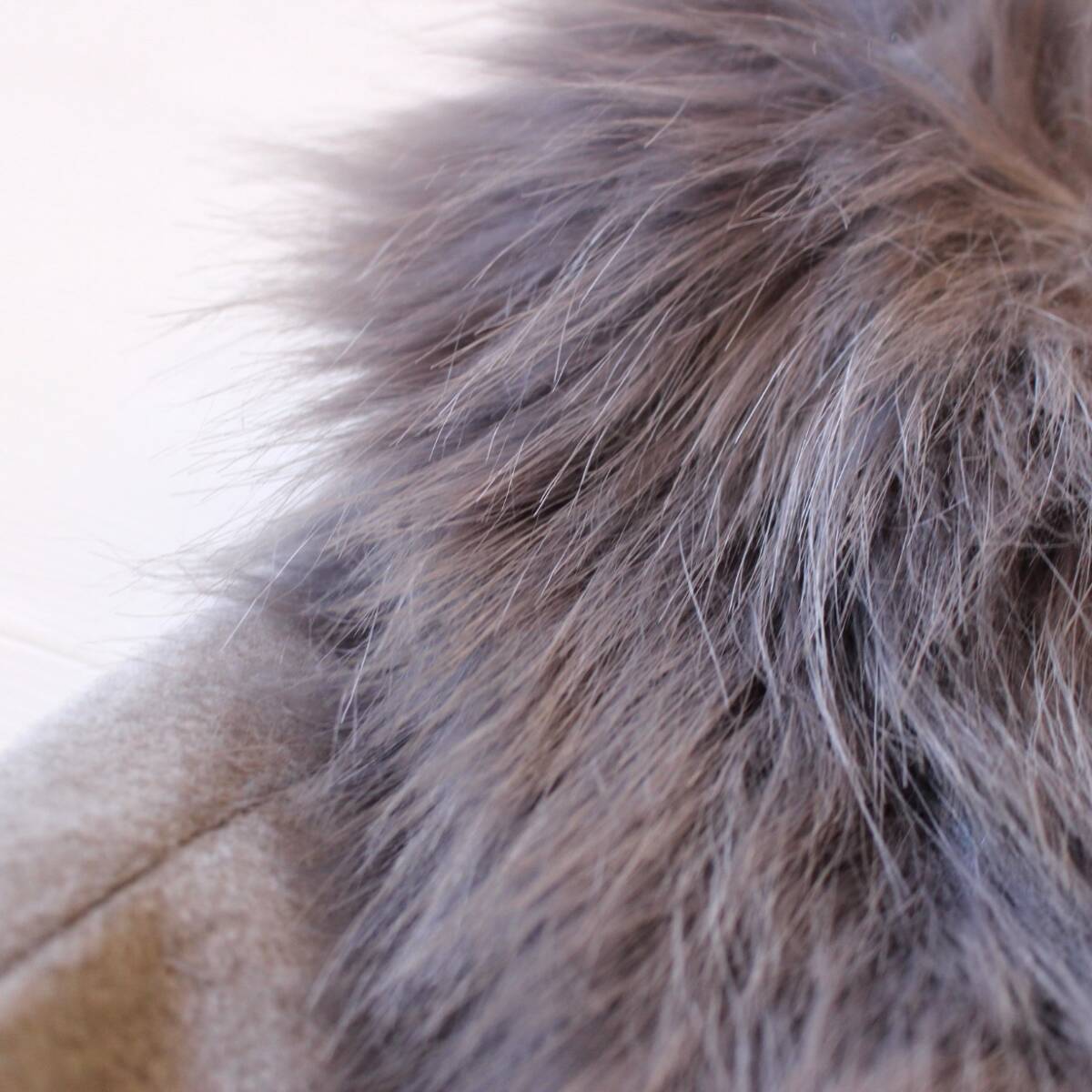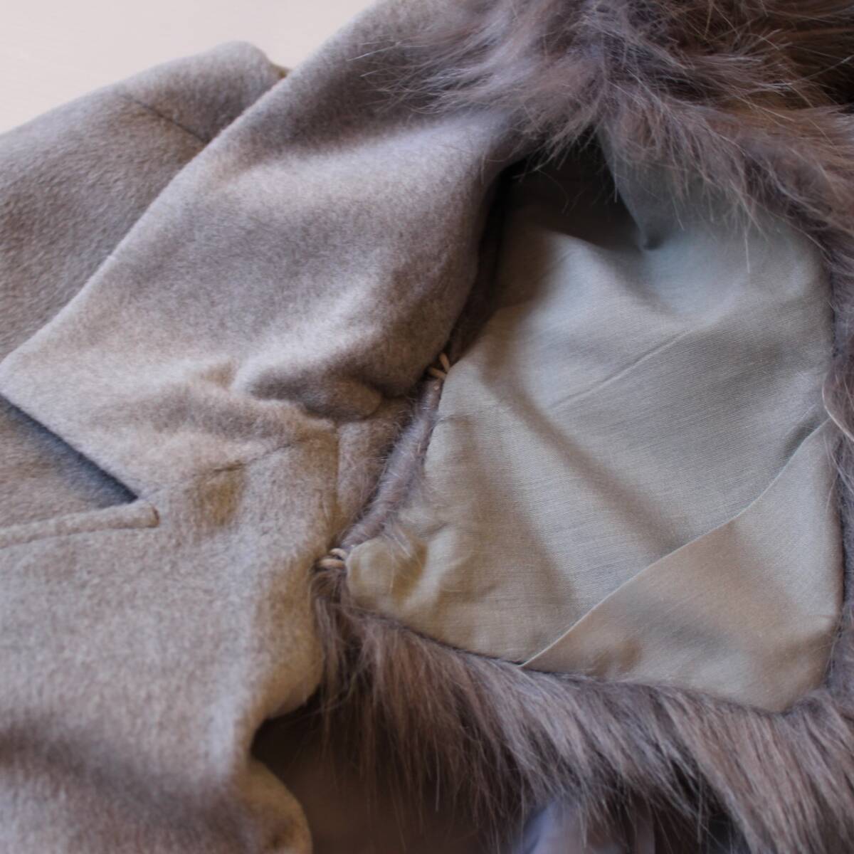 コートのカラーに合わせえて、フェイクファーもカラーリングされた珍しい一枚です。