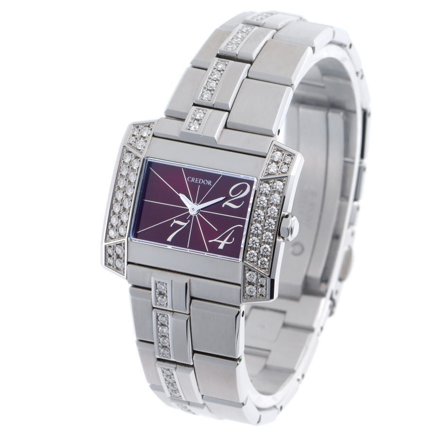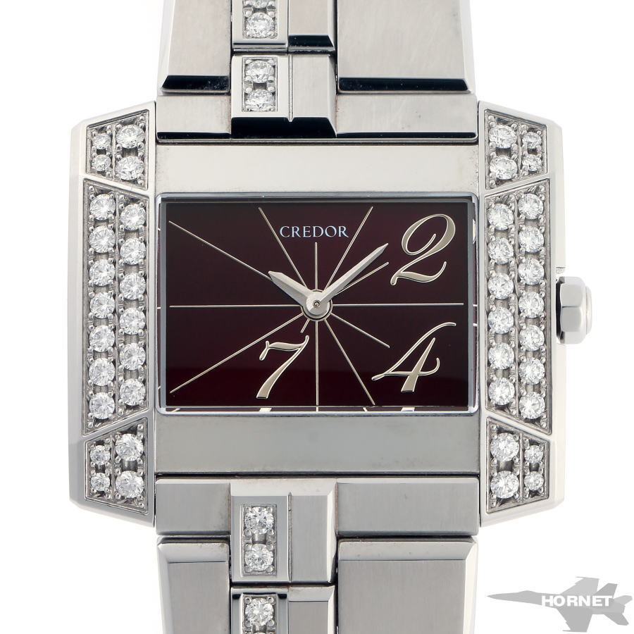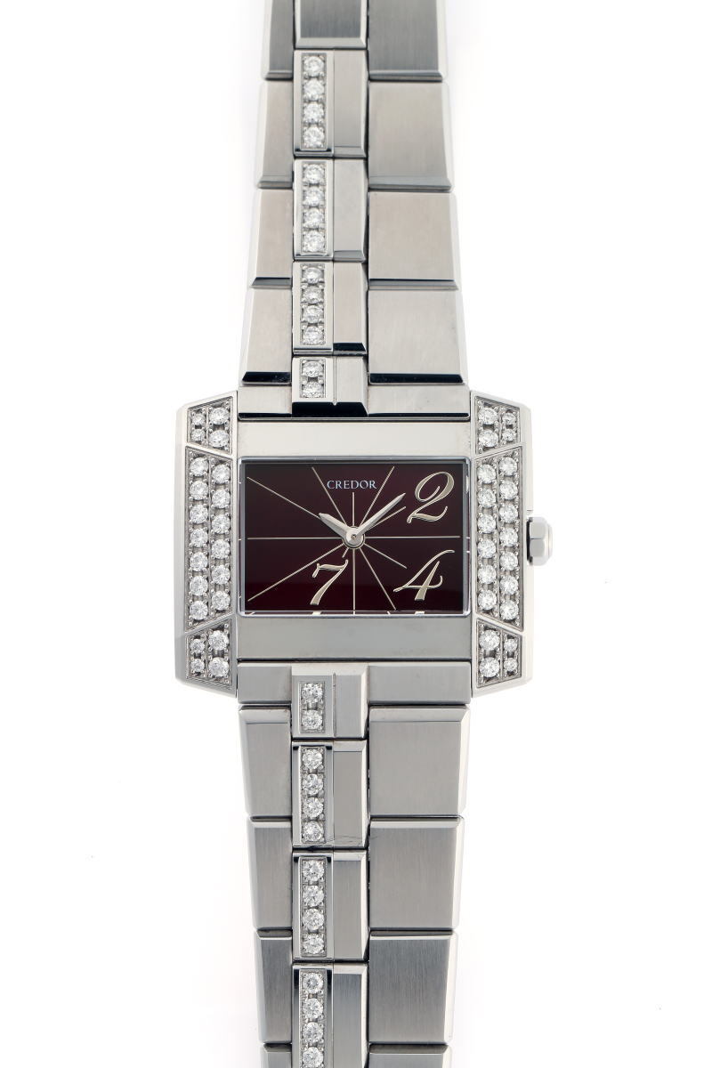 細かいスレ傷程度です。-クレドール・ノードのスクエアウォッチ。ボルドーカラーダイアル。