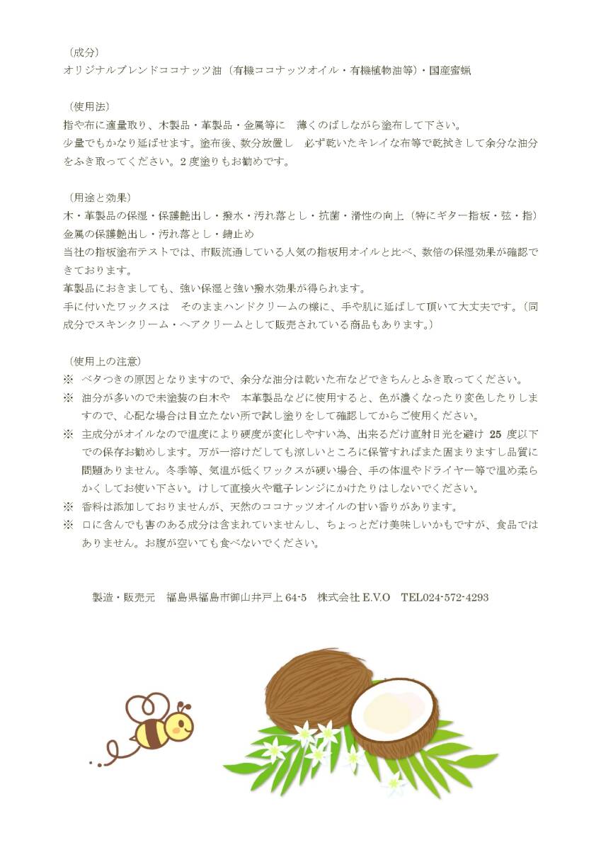 E.V.O Lab製 ギター用蜜蝋WAX COCOBEE 30g スパチュラ付き