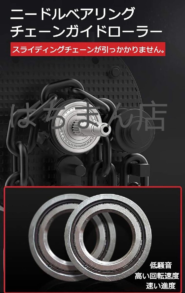 【チェーンガイドローラー】コンパクトタイプのチェーンカバー構造を採用しており、滑らかに使用しており、引っ掛かりにくいです。