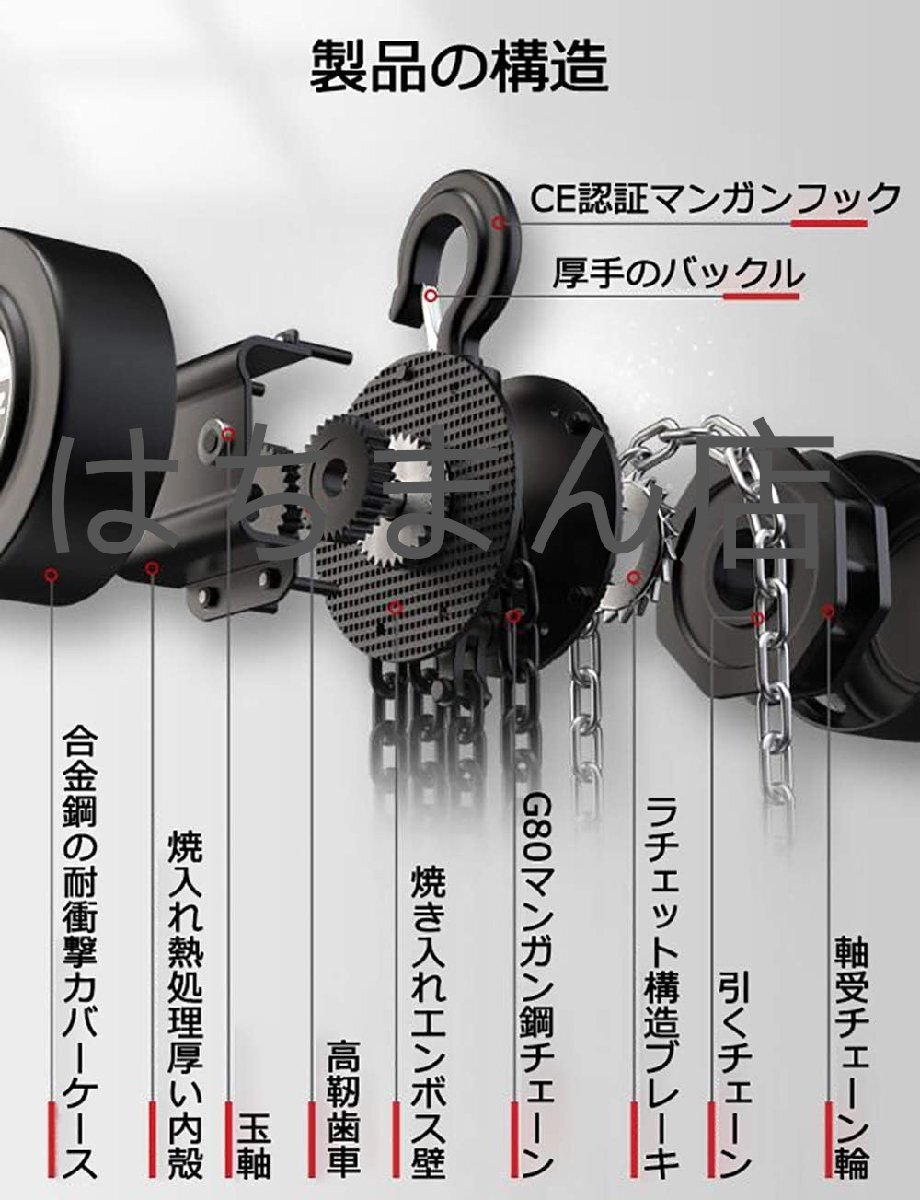 チェーンブロック 手動 チェーンホイスト 軽量化 合金鋼 チェーンローラー 1T 1000Kg 吊り上げ 荷揚げ 牽引 荷締機 滑車 チェーン (6m)