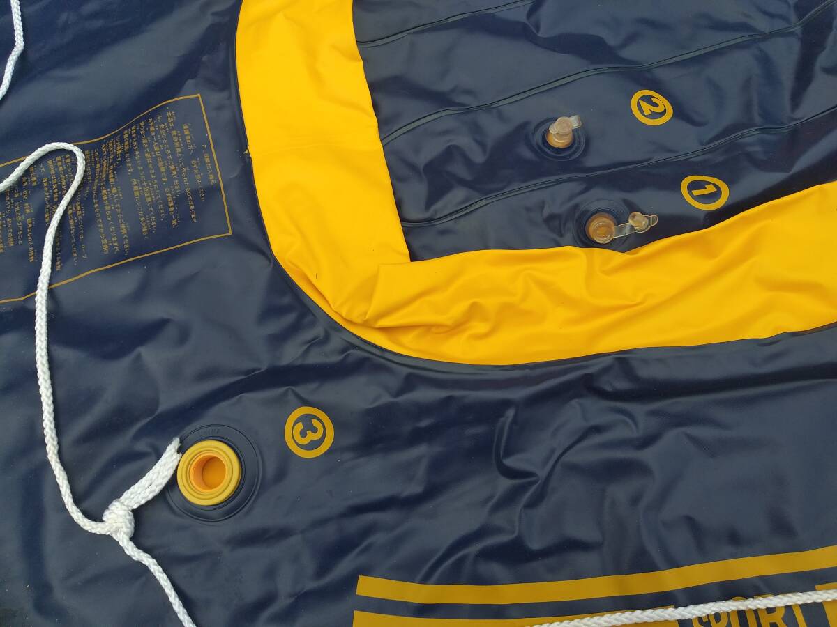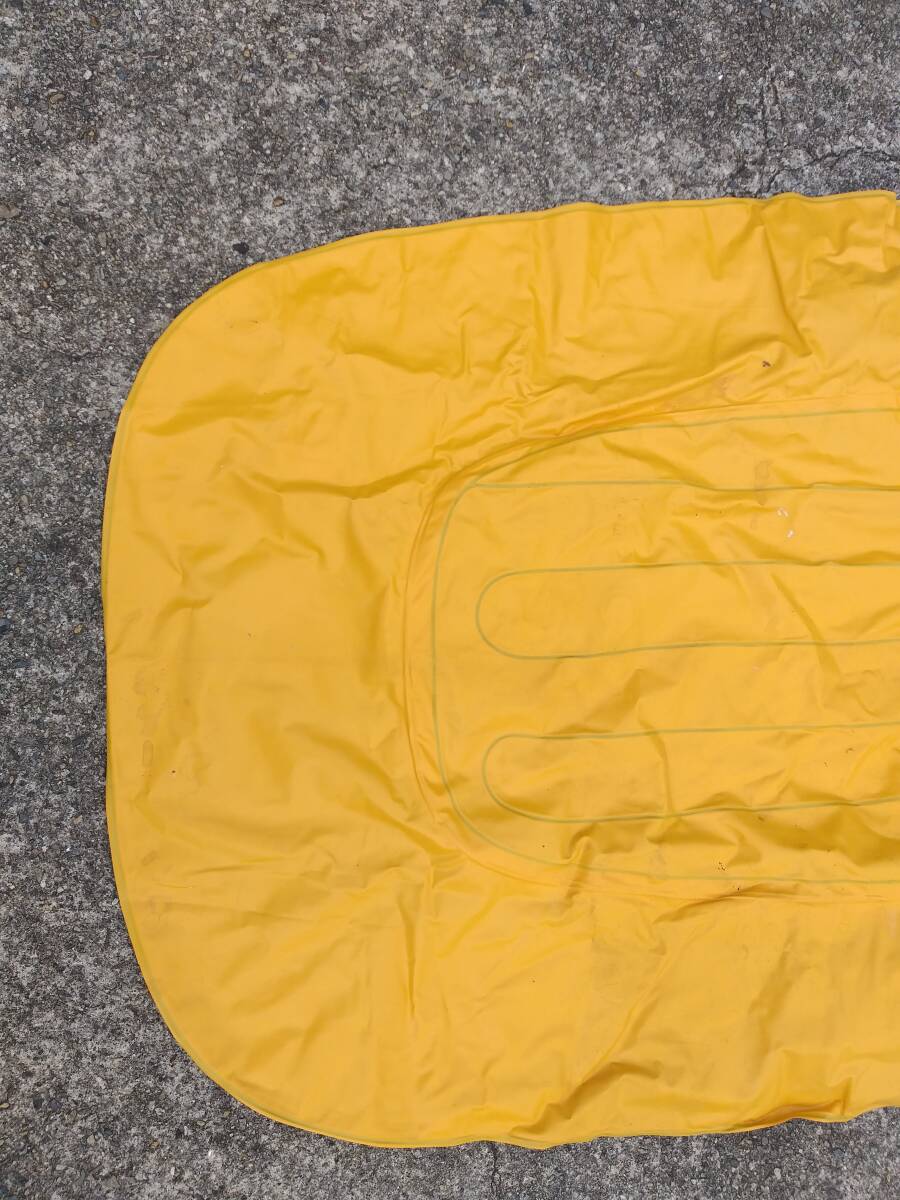 ●商品状態:商品状態は、写真でご覧頂ける状態です。落札品は1枚目の写真でご覧頂けるのが全てです。商品に空気を入れ確認しましたら、空気漏れは見られませんでした。穴とか破れ等はありません。表面にこ擦り傷や小さな傷もほとんどありません。極美品かと思いますが、10枚目の写真をご覧下さい。倉庫に放置していた際に、上に置いてあった鉄のバケツの錆び水が上に落ちたようで、黄茶色の跡が見られます。写真でご覧頂ける現状での出品です。中古現状品ですので、 ご理解をお願いします。念のために一応、全てジャンク品としてお考え頂きご入札をお願いします。