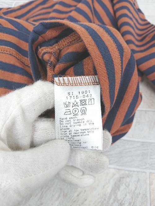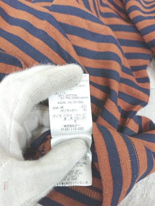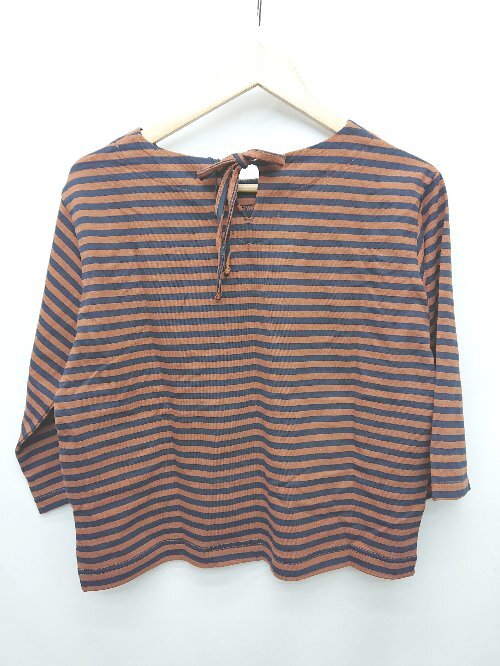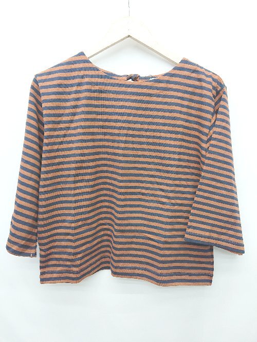 ◇ Θ Φ POU DOU DOU プードゥドゥ ボーダー柄 コットン 七分袖 カットソー サイズM ブラウン レディース P